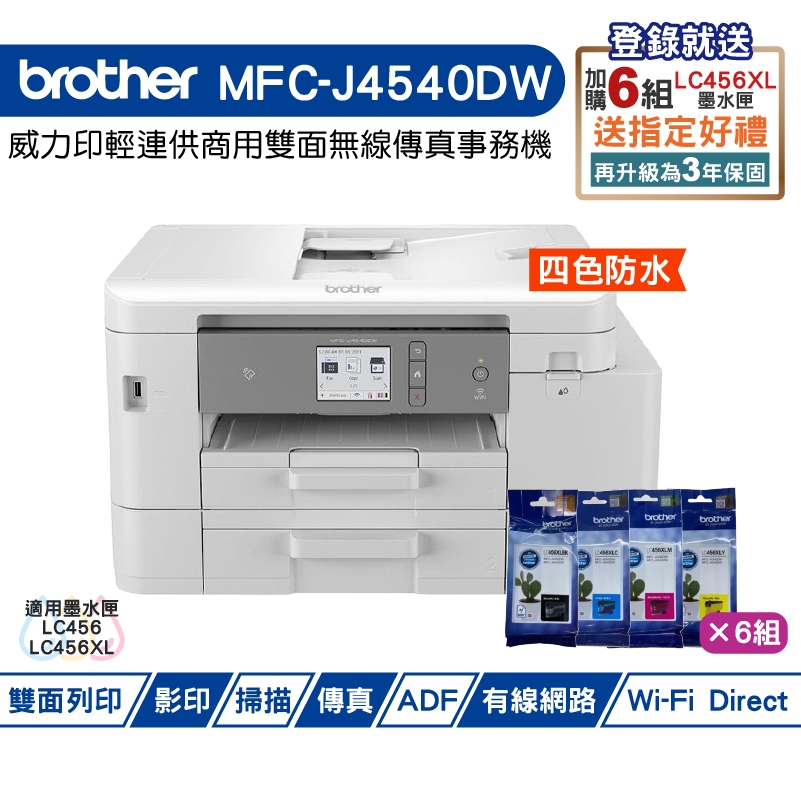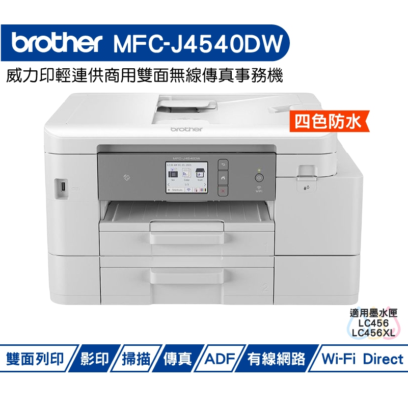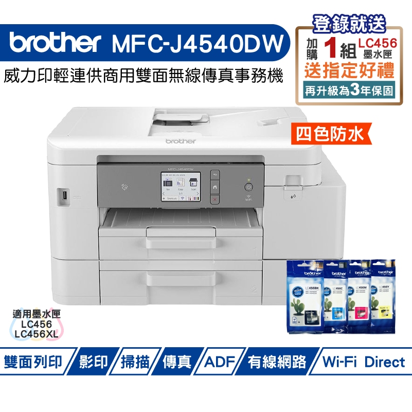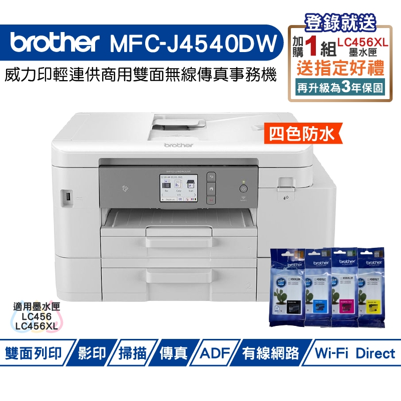 Brother MFC-J4540DW 威力印輕連供商用雙面網路雙紙匣傳真事務機 加購原廠墨水 登錄送好禮
