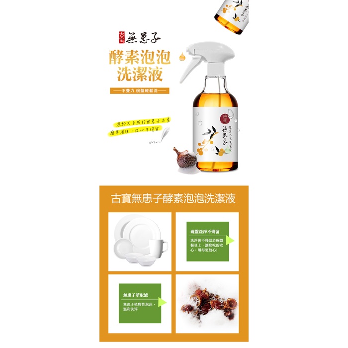 【古寶】無患子酵素泡泡 碗盤油汙洗潔液500g(補充瓶)-強去油!不咬手,植物洗淨好安心^^