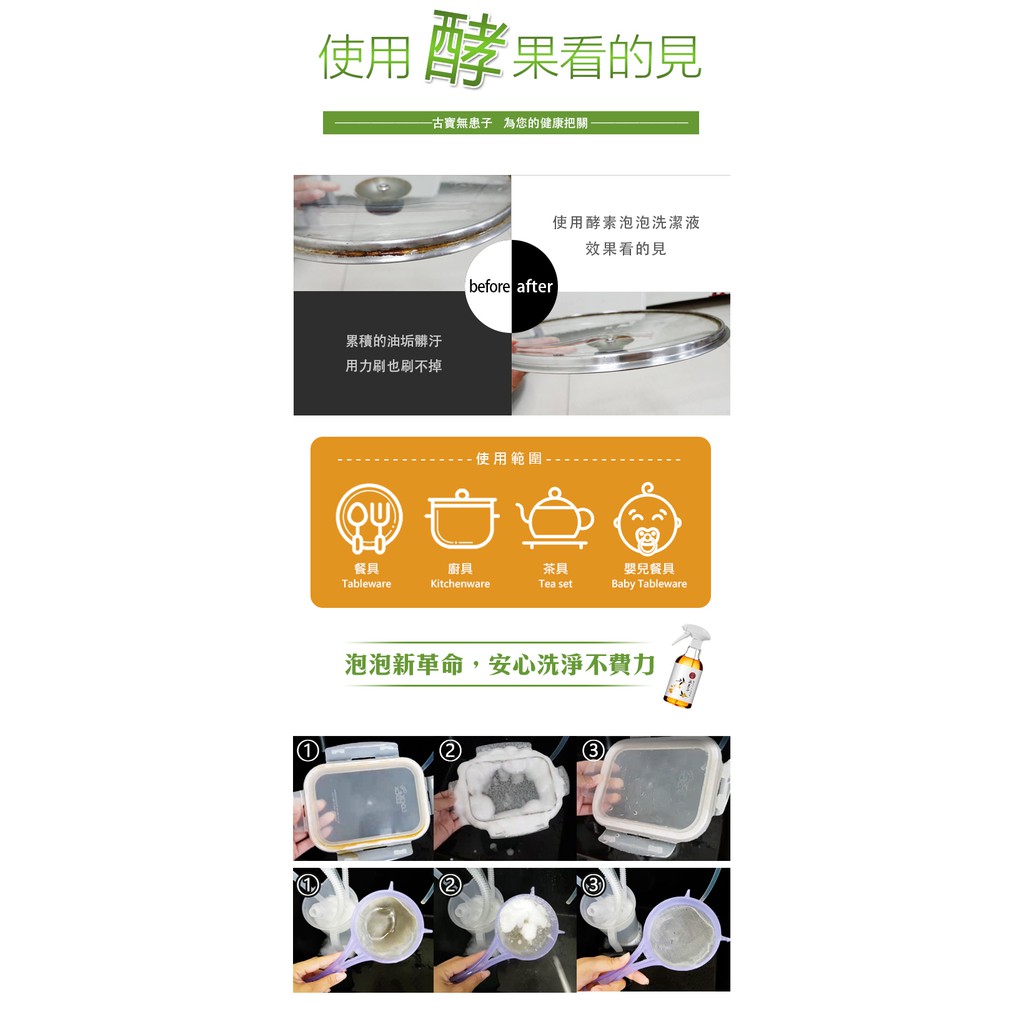 【古寶】無患子酵素泡泡 碗盤油汙洗潔液500g(噴霧瓶+補充瓶各一)-強去油!不咬手