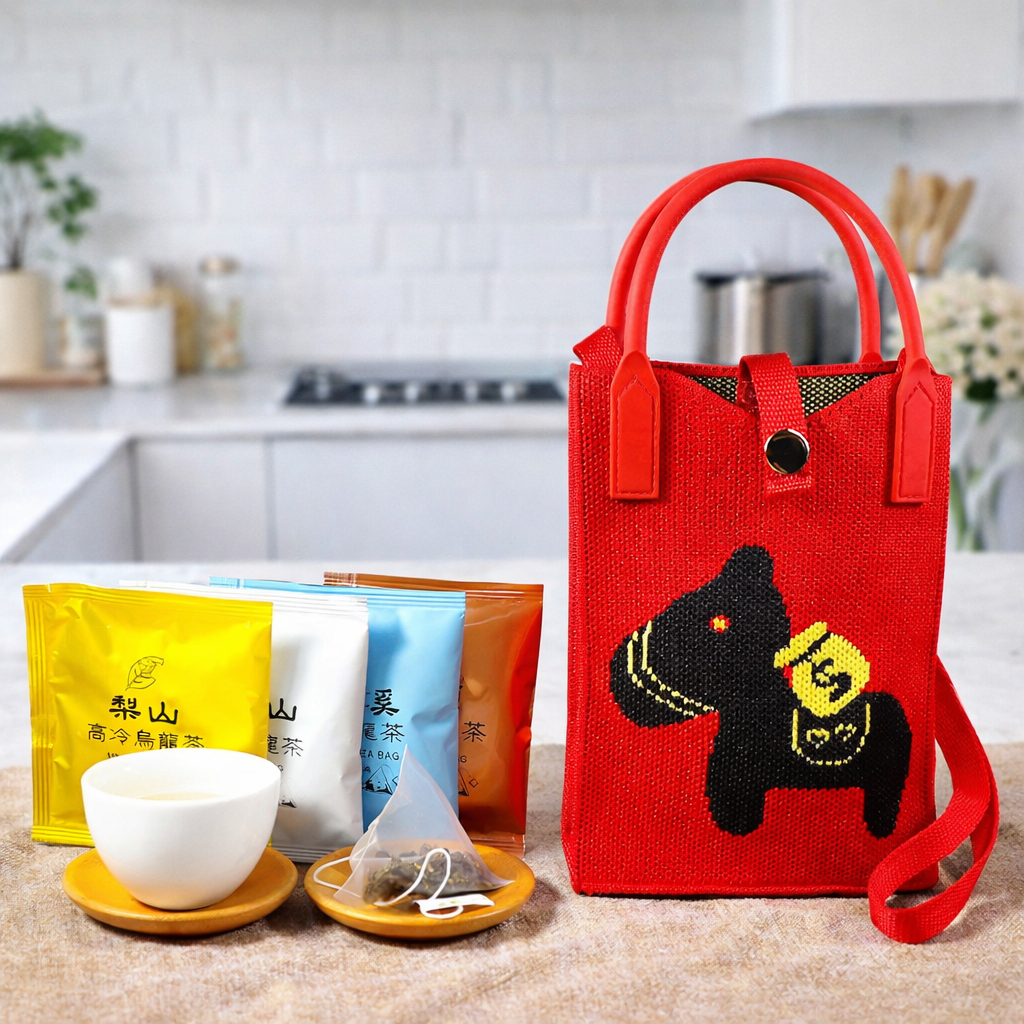 【龍源茶品】馬上有錢-茗大山頭三角立體茶包禮盒-12包x3g/袋-附提袋│杉林溪│阿里山│梨山高冷│凍頂烏龍│針織斜背包