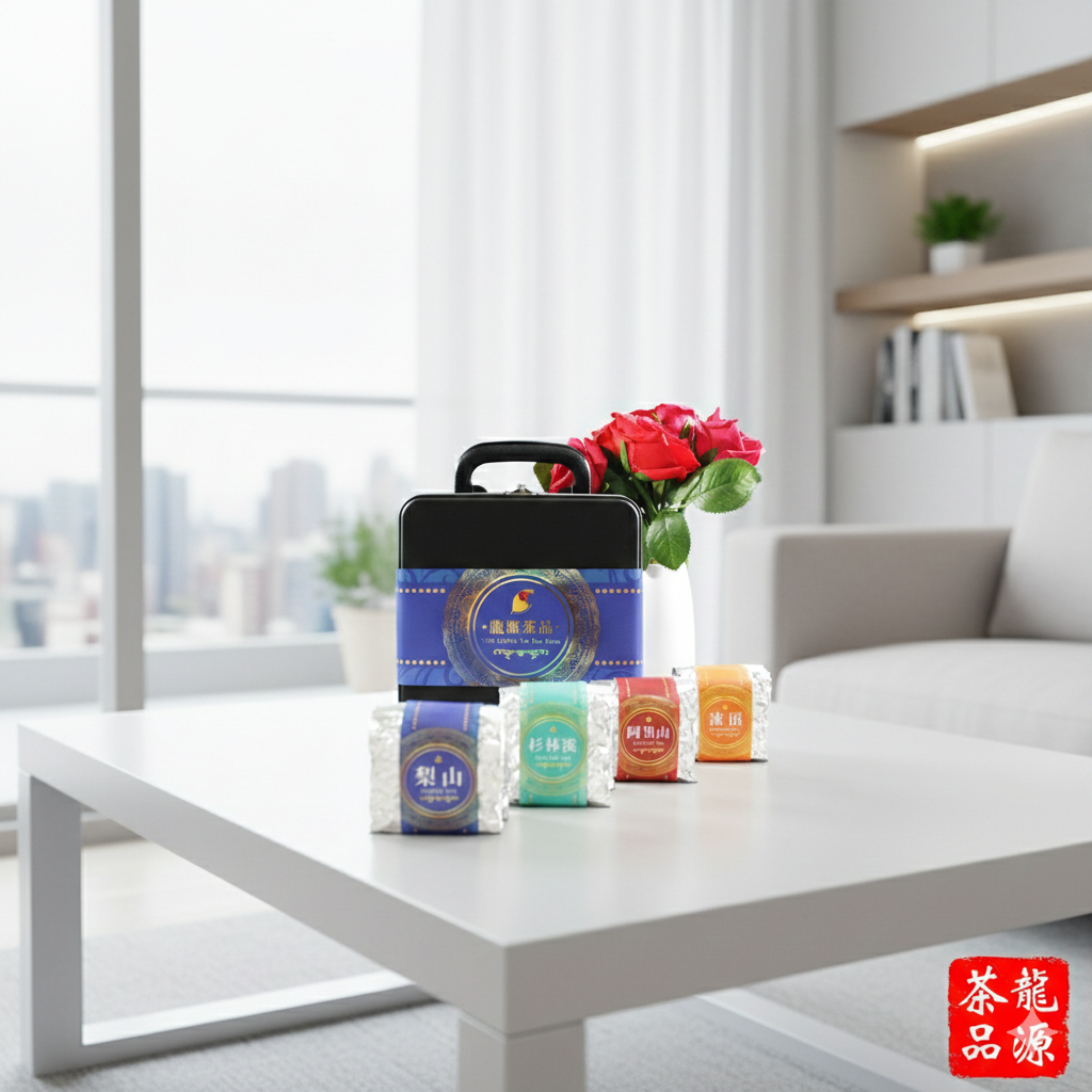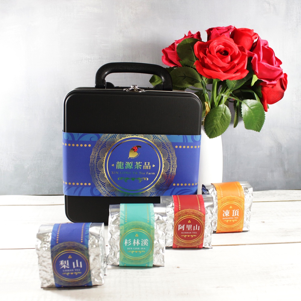 國際精品藍帶鍍金典藏手提鐵盒茶葉禮盒4包入組(50g/包~共200g)-台灣經典四大山頭/頂級禮盒【龍源茶品】烏龍高山茶