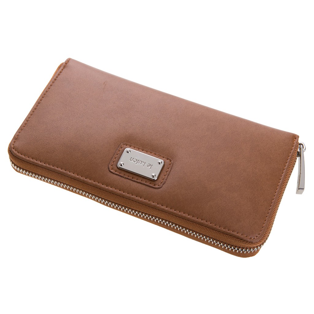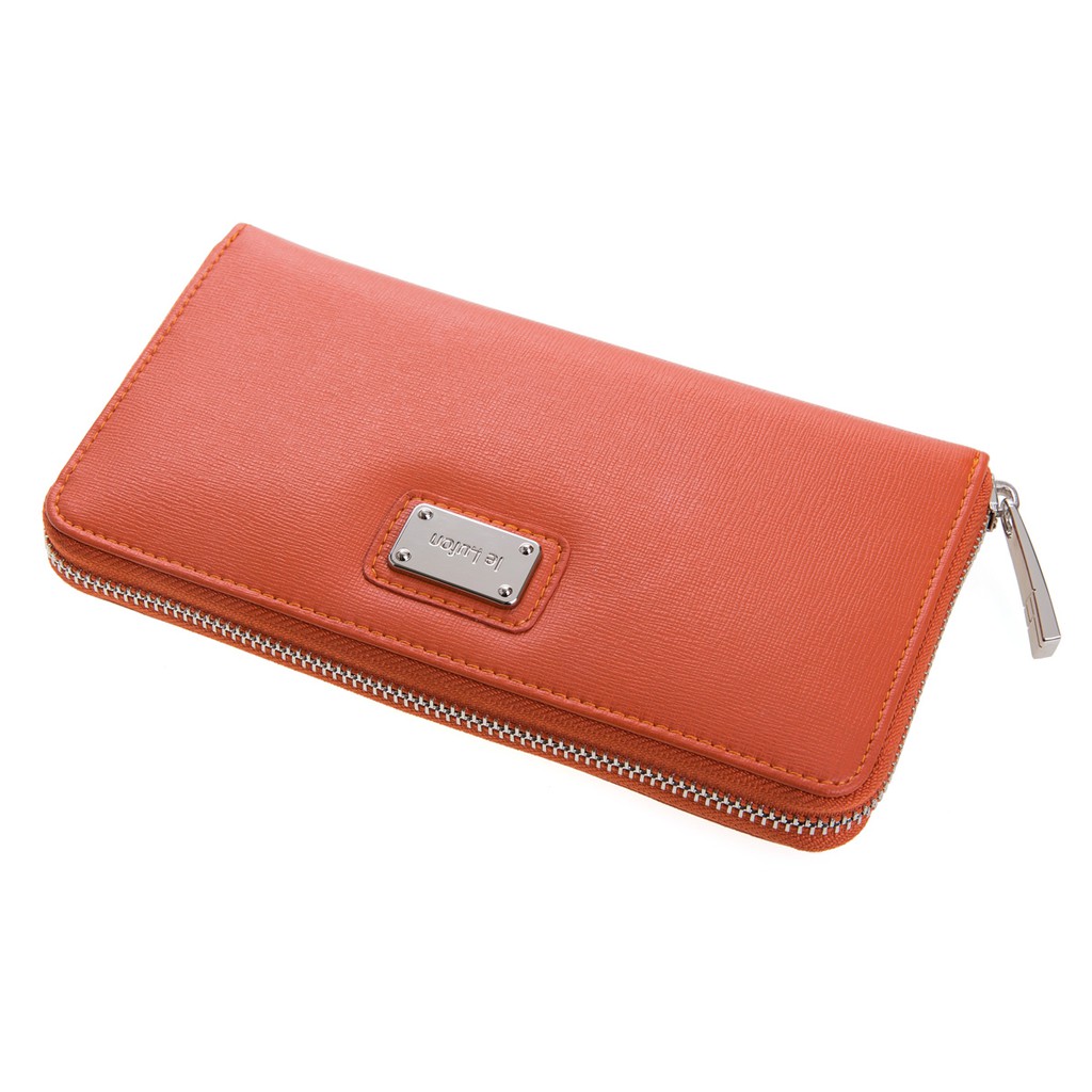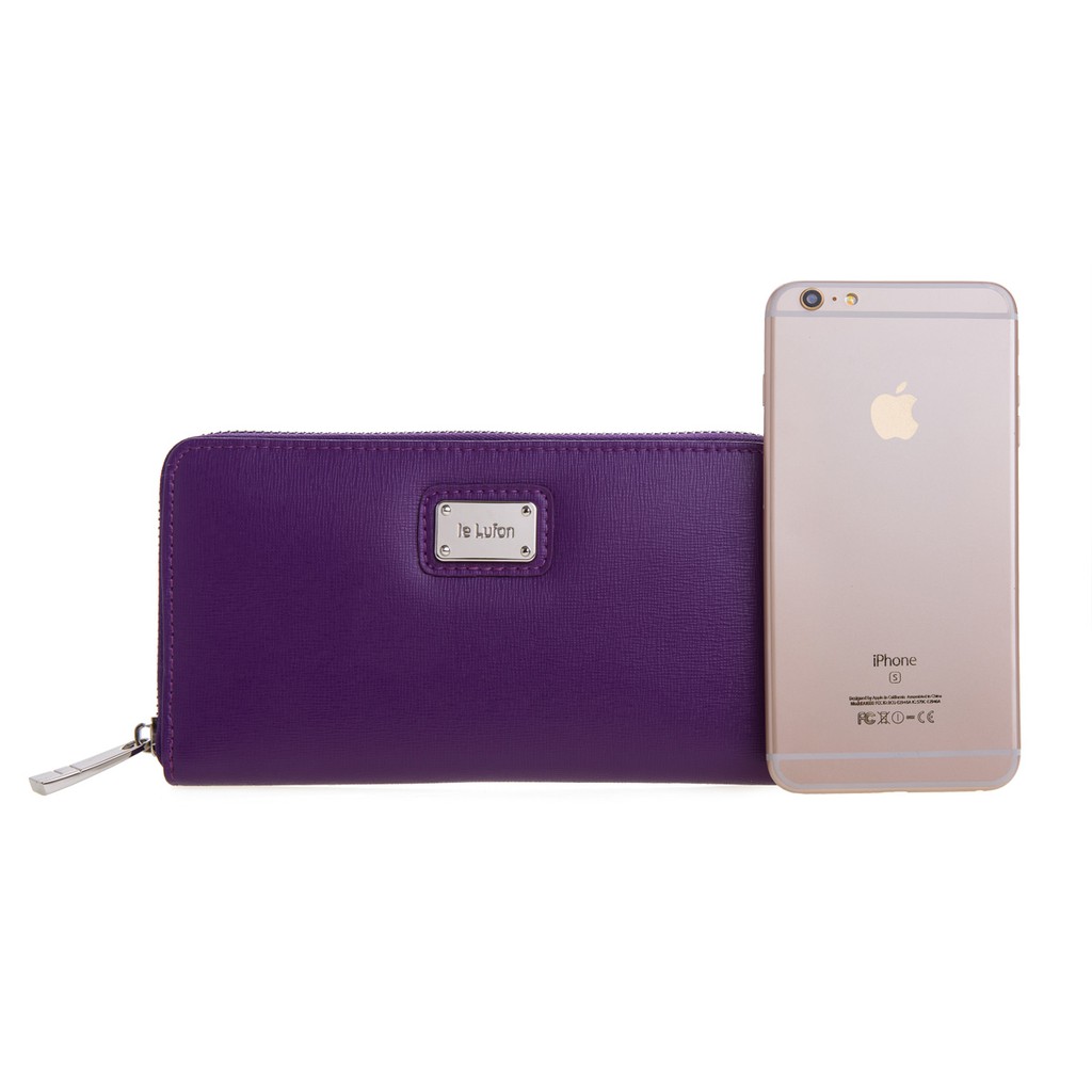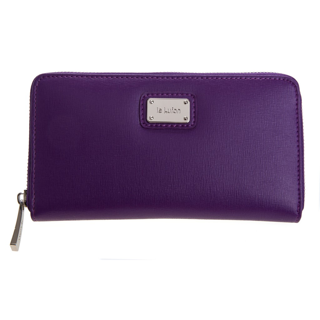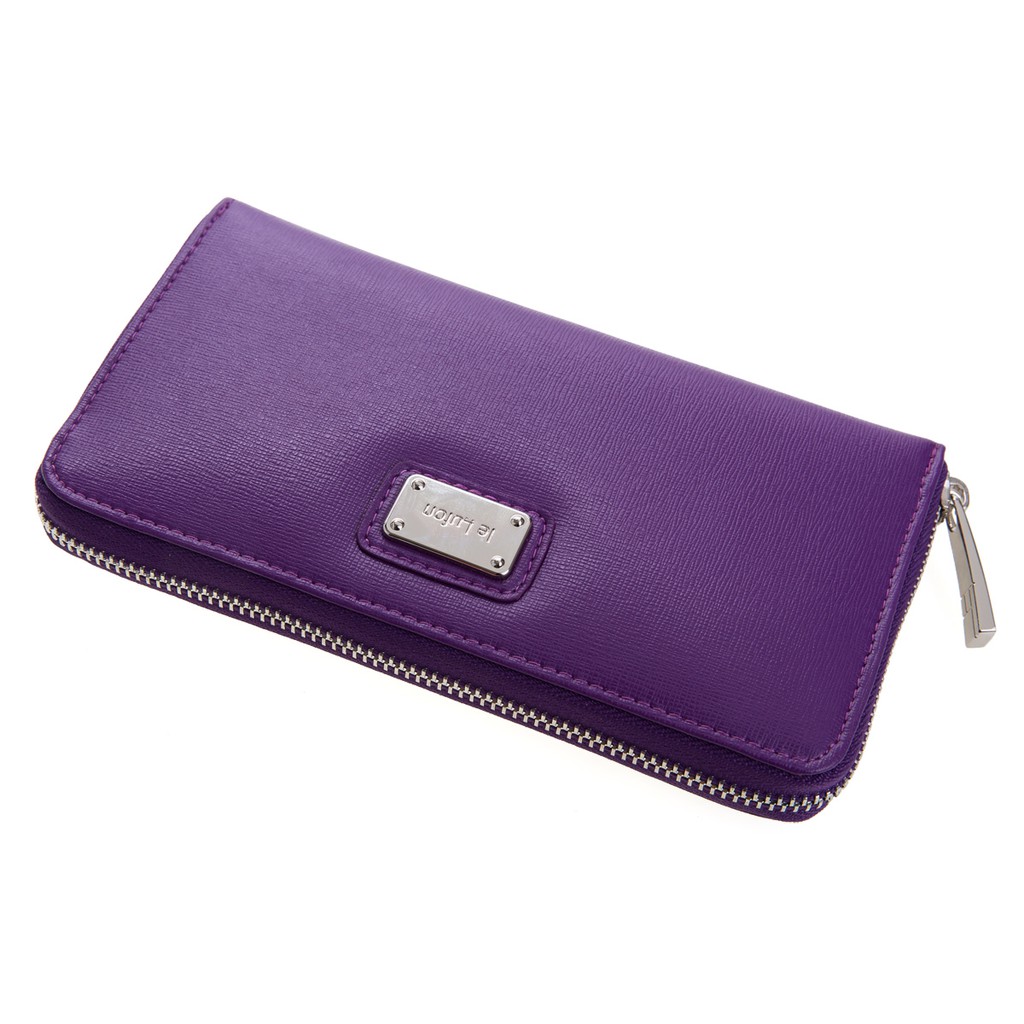 【le Lufon】迷人紫色金屬名牌點飾風琴式ㄇ型拉鍊長皮夾-零錢包/長夾