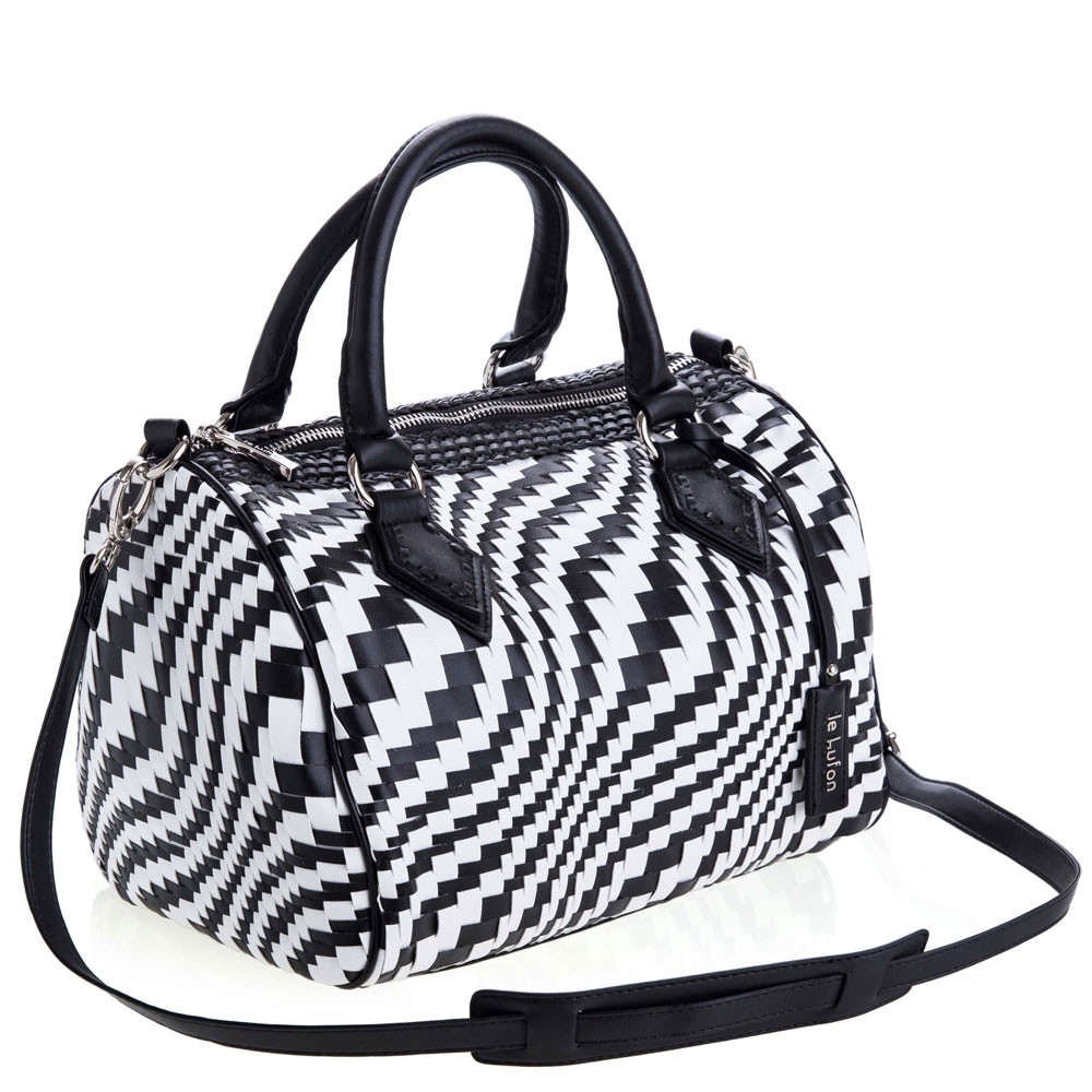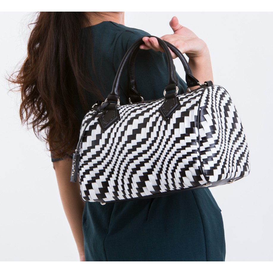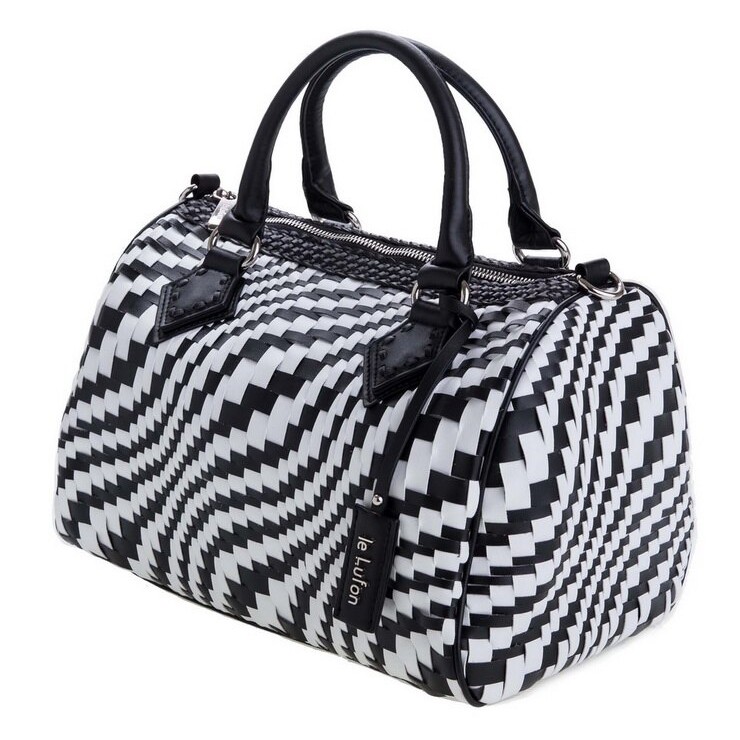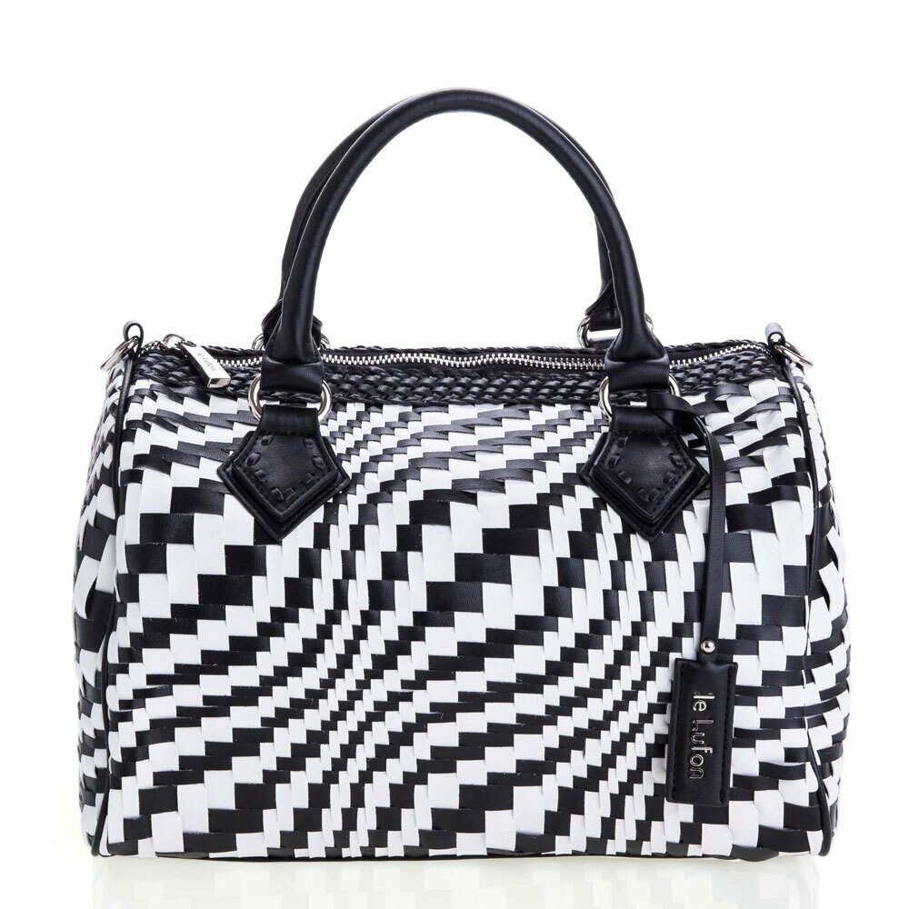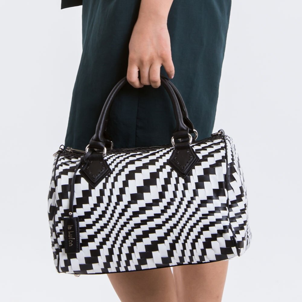 【le Lufon】經典款編織皮交錯金屬吊飾簡約大容量 波士頓兩用包(L) 手提包/斜背包/側背包