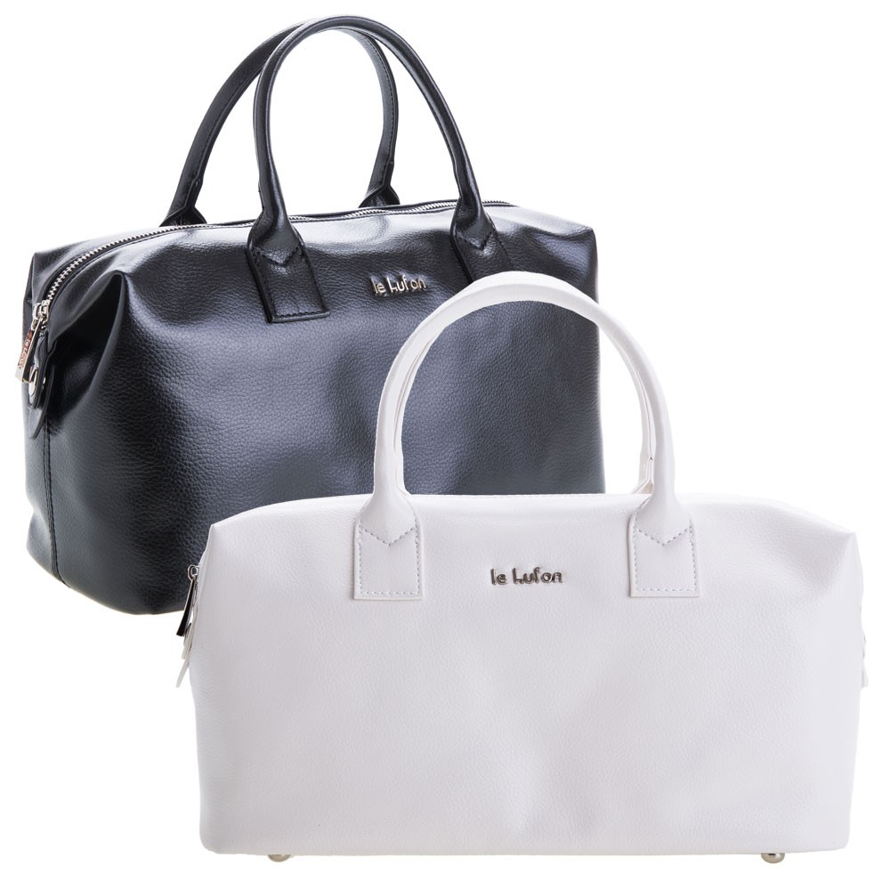 【le Lufon】珍珠白色荔枝紋革圓桶長型大容量手提包(M)軟包 輕量型皮包(黑/白二色)波士頓包
