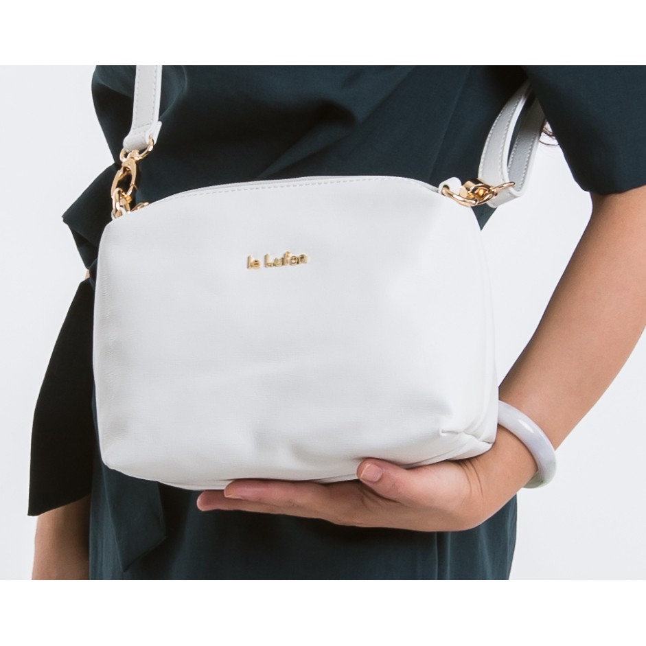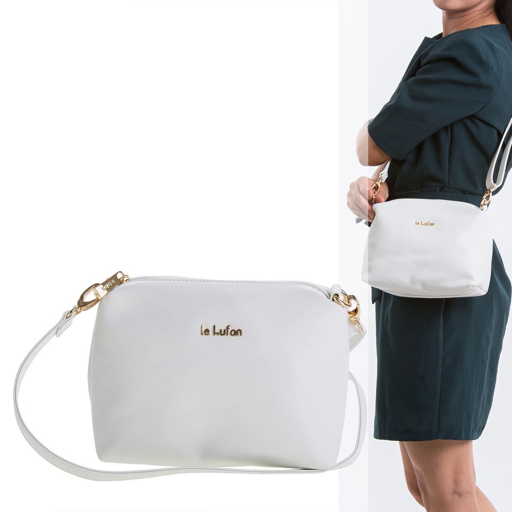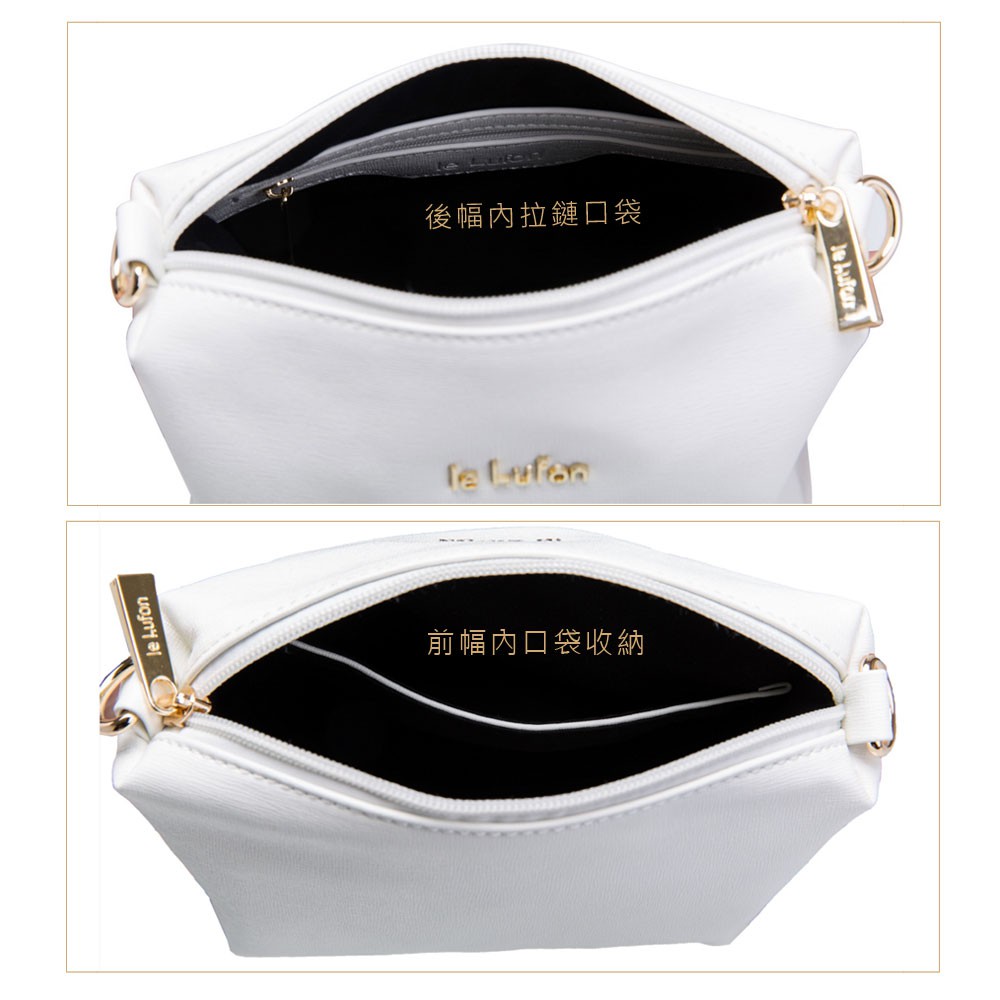 【le Lufon】象牙白色十字紋皮革休閒簡約設計小肩背包(XS) 側背包/斜背包/單肩包(象牙白 / 深灰二色)