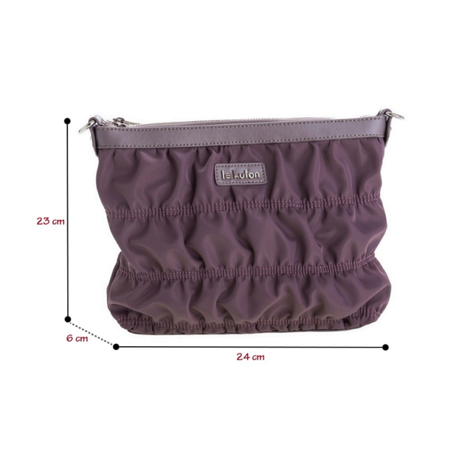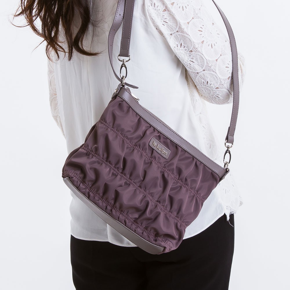 le Lufon 防潑尼龍繡紋拼皮革小包(S) 肩背包/斜背包/側背包-烟紫色 旅行輕量型淑女用小包