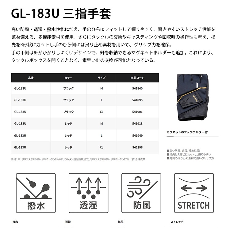 SHIMANO GL-183U 黑 [漁拓釣具] [三指手套]