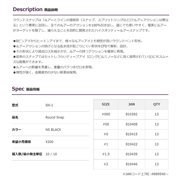 DECOY SN-1 ROUND SNAP [漁拓釣具] [路亞別針]