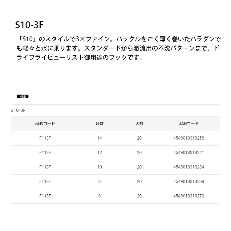 GAMAKATSU FLY S10-3F [漁拓釣具] [飛蠅鉤]