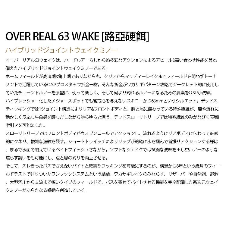 O.S.P OVER REAL 63 WAKE [漁拓釣具] [路亞硬餌]