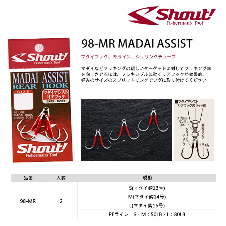 SHOUT 98-MR MADAI ASSIST 輔助鉤 [一組兩副] [漁拓釣具]