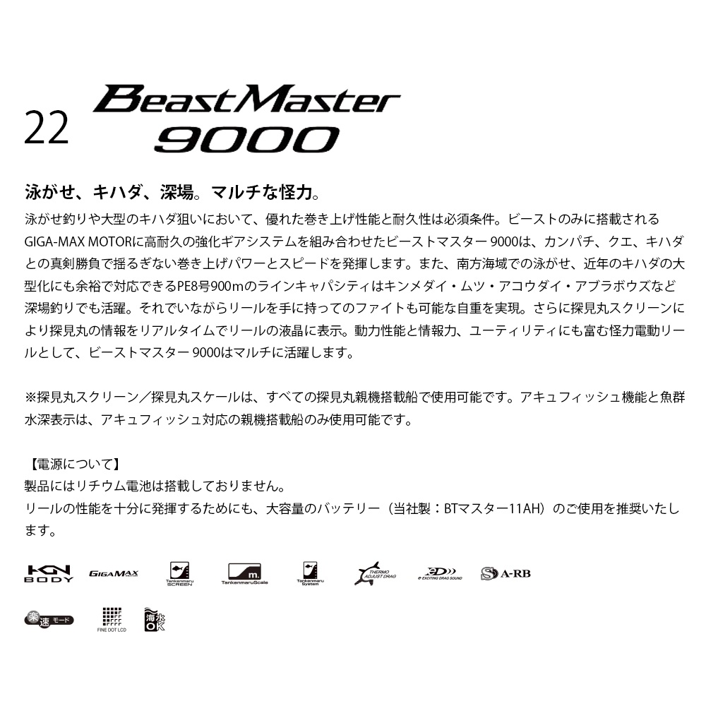 SHIMANO 22 BEAST MASTER 9000 [漁拓釣具] [電動捲線器][超取限一顆]