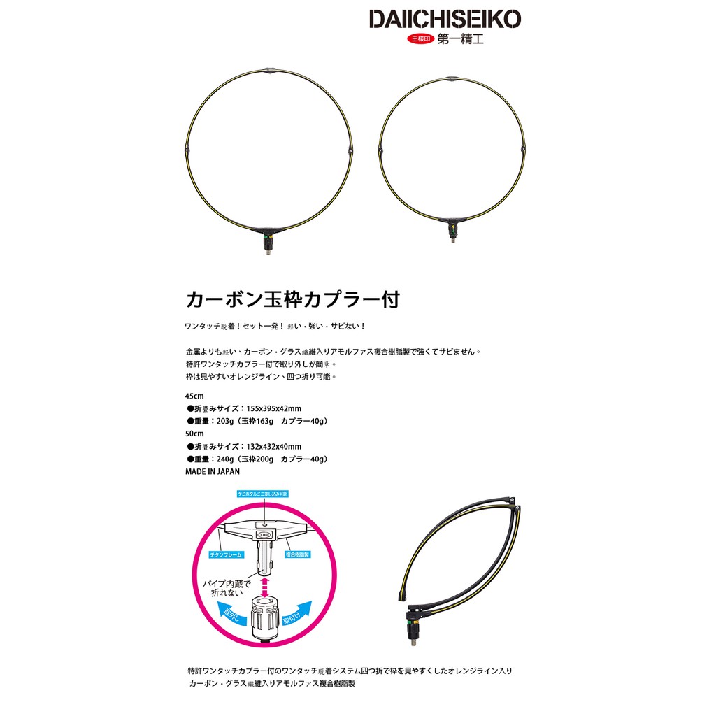 第一精工 カーボン玉枠カプラー付 45CM (磯玉柄框) [漁拓釣具][日本製]