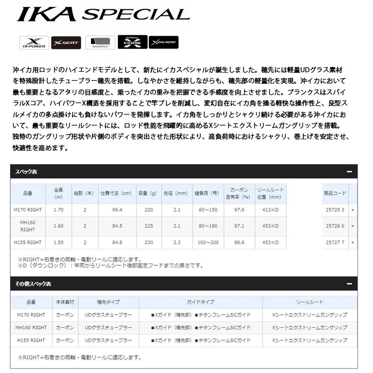 SHIMANO IKA SPECIAL MH160 [漁拓釣具 [船釣透抽竿]