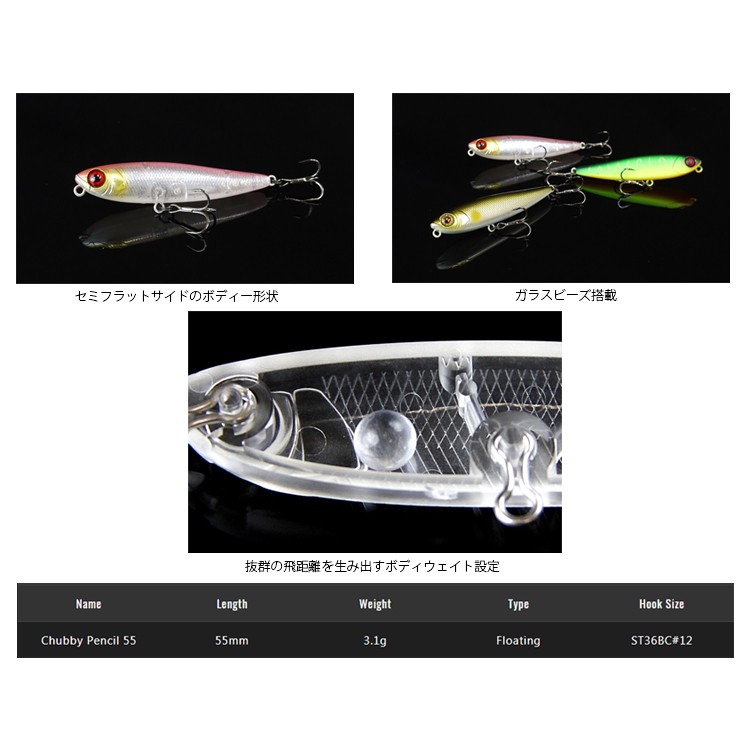 JACKALL CHUBBY PENCIL 55 [漁拓釣具] [硬餌]