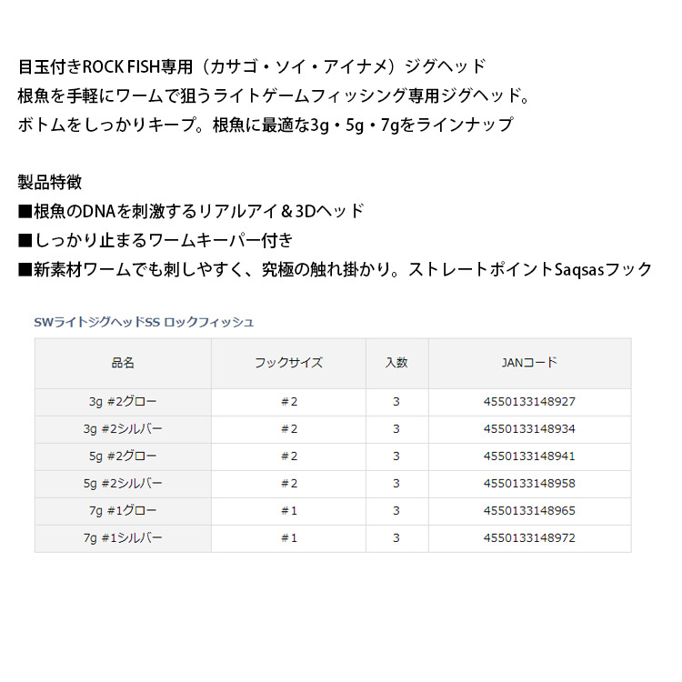 DAIWA SW LIGHT JIGHEAD SS ROCK FISH 3G #2 [漁拓釣具] [汲頭鉤]