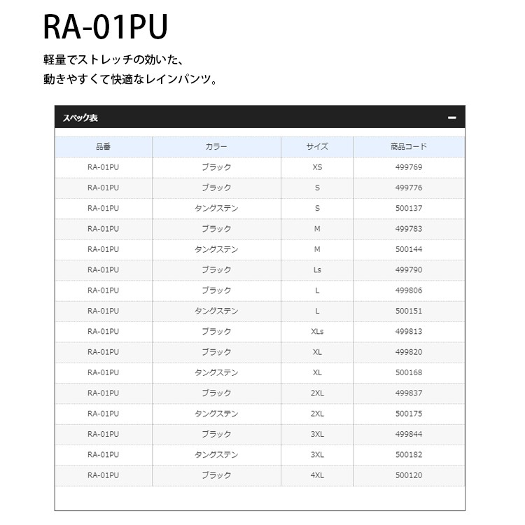 SHIMANO RA-01PU #黑 [漁拓釣具] [防潑水長褲]