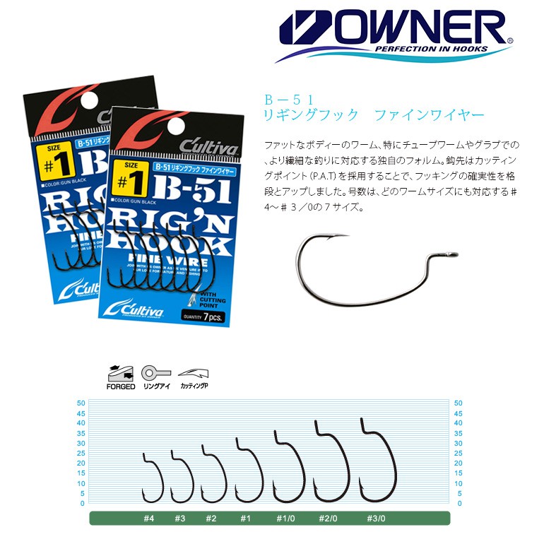 OWNER Cutiva B-51 軟蟲用曲柄鉤 [漁拓釣具]