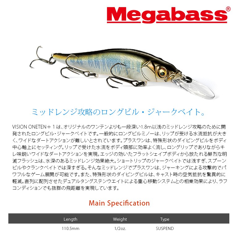 MEGABASS ONETEN +1 米諾 [漁拓釣具] [硬餌]