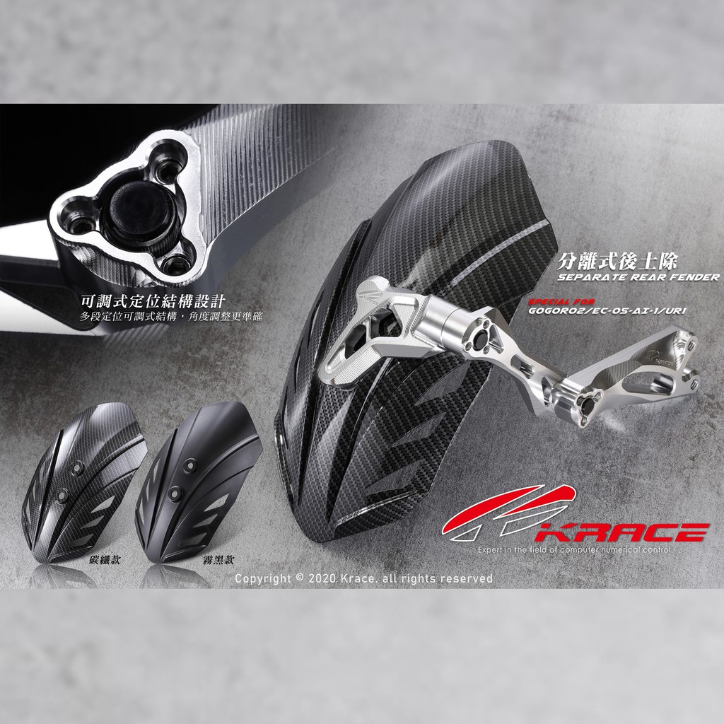 【Krace凱銳斯】GOGORO2 EC-05 Ai-1 UR1 分離式後土除 水轉碳纖/霧黑