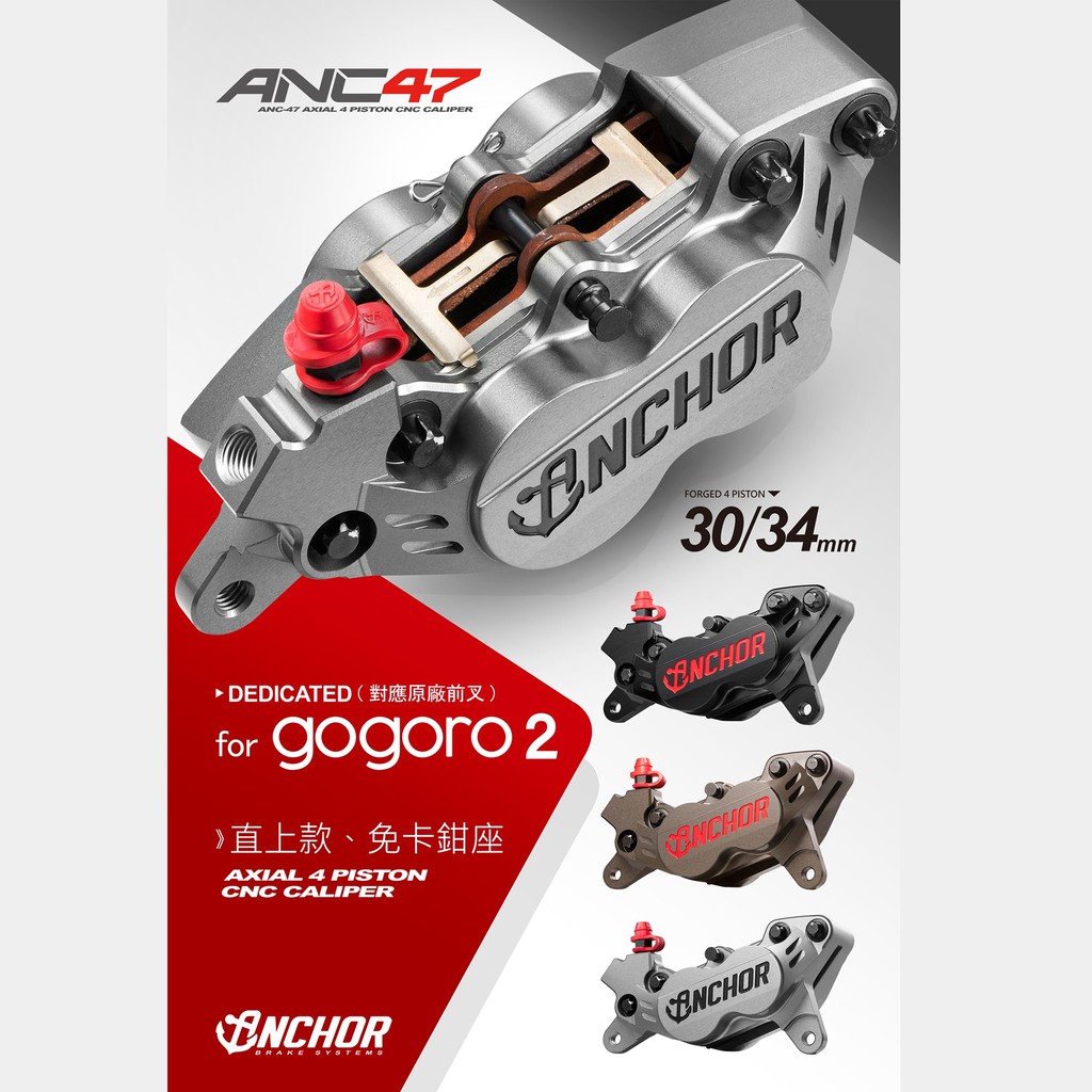 【Anchor Brake銨科】 ANC-47 GOGORO 2 直上型 活塞 卡鉗 免卡鉗座 對四卡鉗