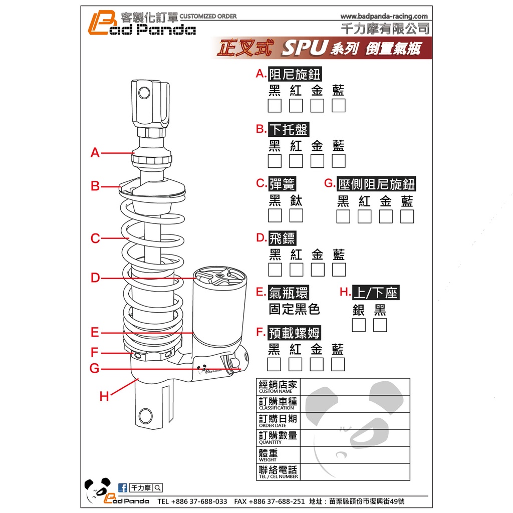 【Bad Panda/預購】千力摩 FORCE2.0 SPU 競技版正叉式後避震 後叉