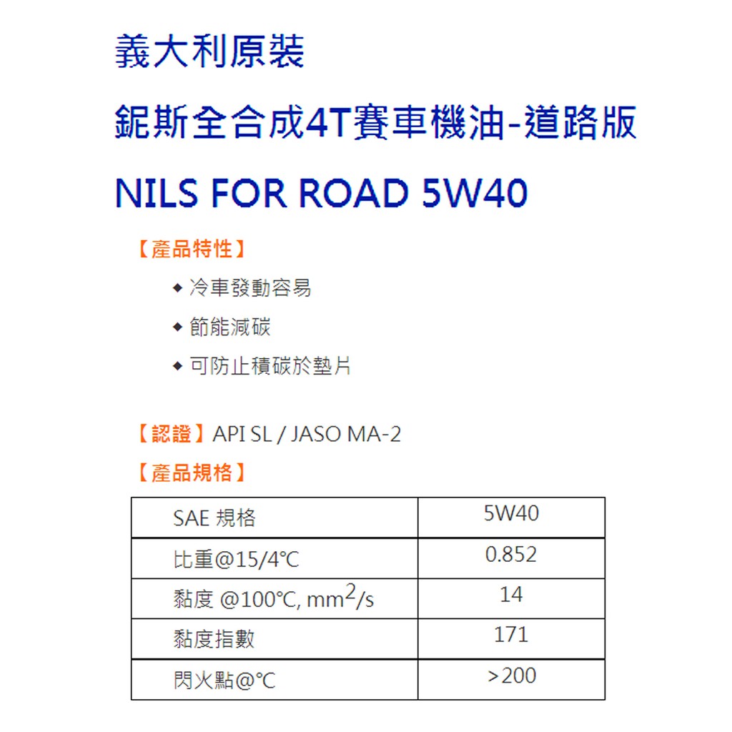 【NILS鈮斯】 全合成機油 賽車油 FOR ROAD