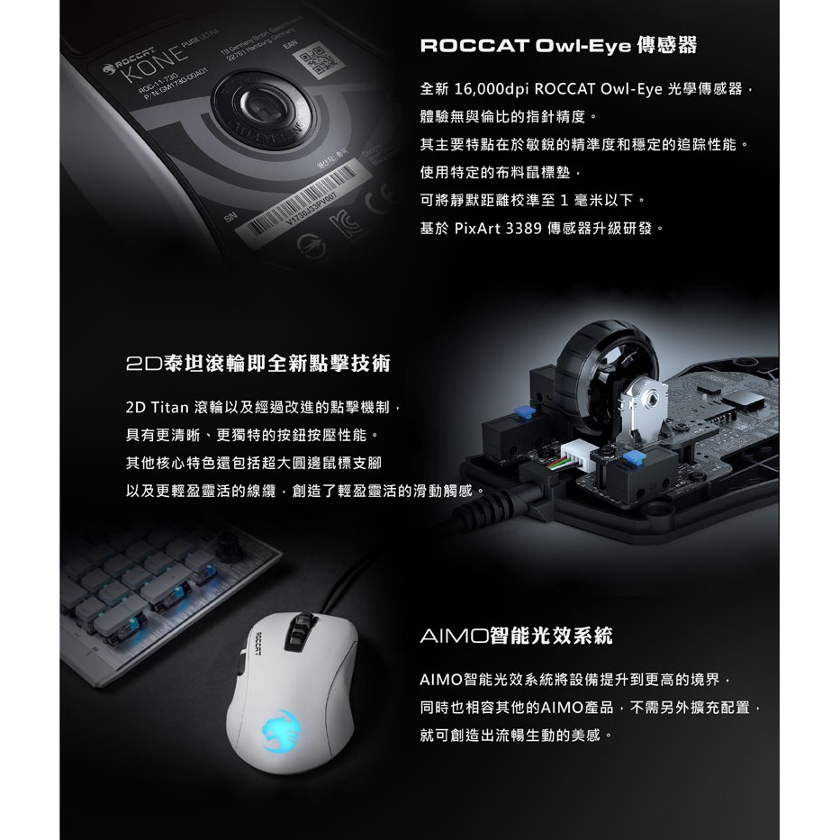 德國冰豹 ROCCAT Kone Pure Ultra 極光白色 電競滑鼠