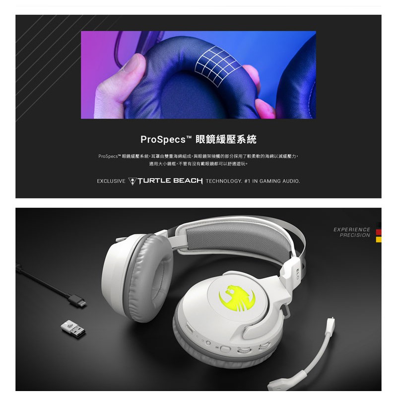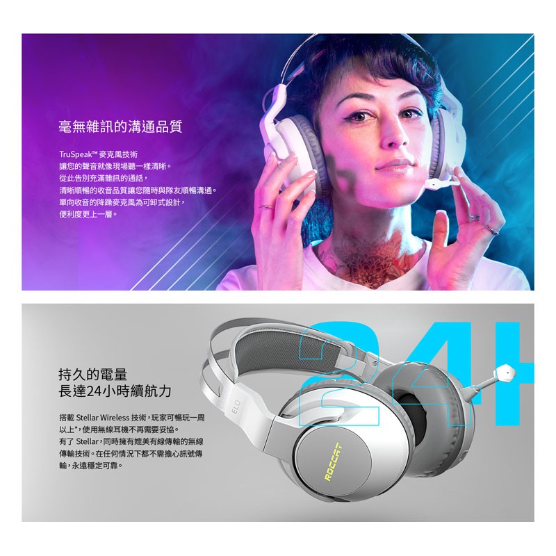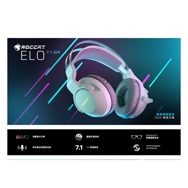 德國冰豹 ROCCAT Elo 7.1 Air 無線環繞聲效 RGB 電競耳機-白