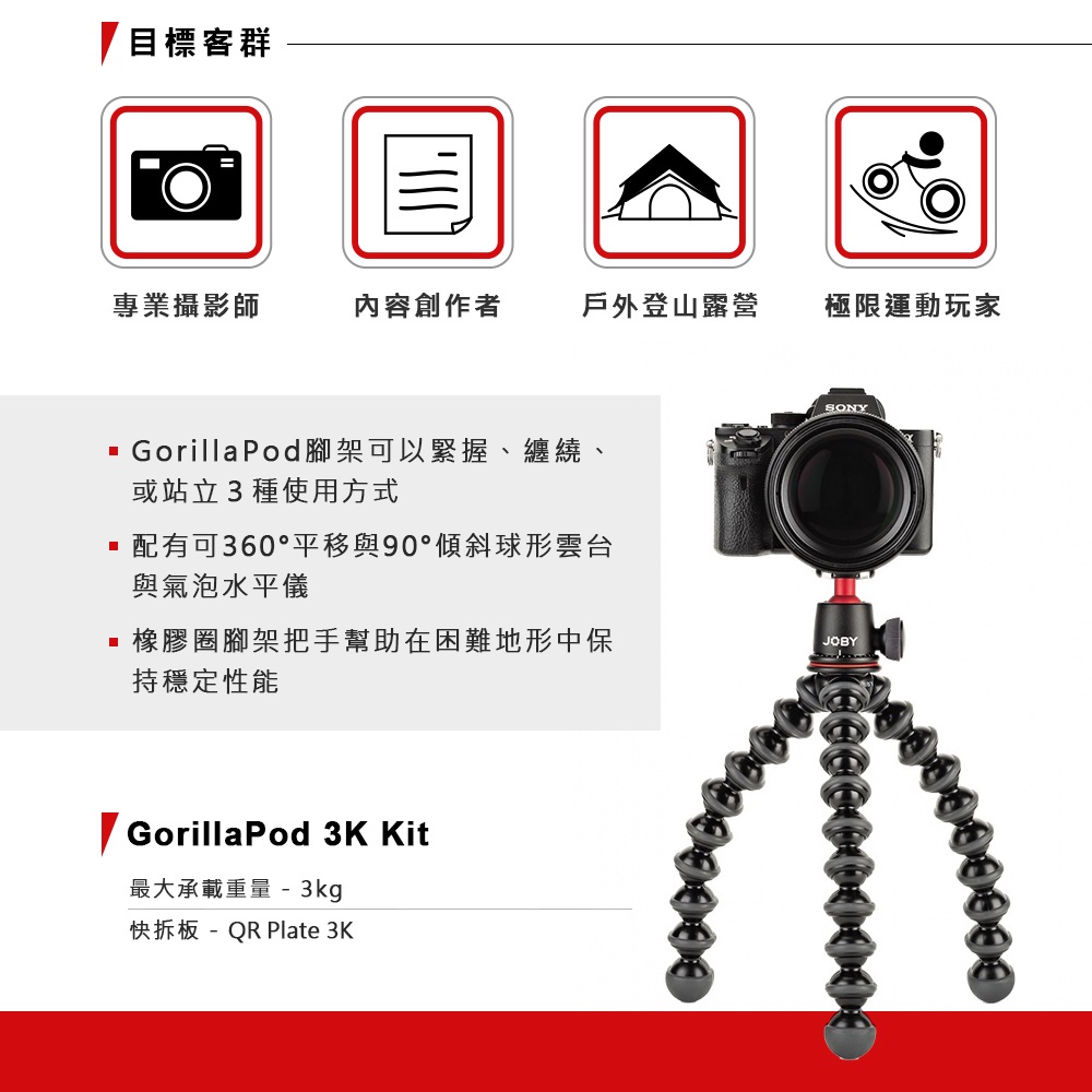 JOBY 金剛爪 3K套組 腳架 JB01507 公司貨 / JB01507-BWW