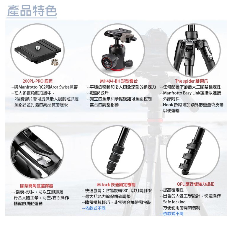 Manfrotto 曼富圖 Befree Advanced 鋁合金旋鎖三腳架套組 藍色 MKBFRTA4BL-BH
