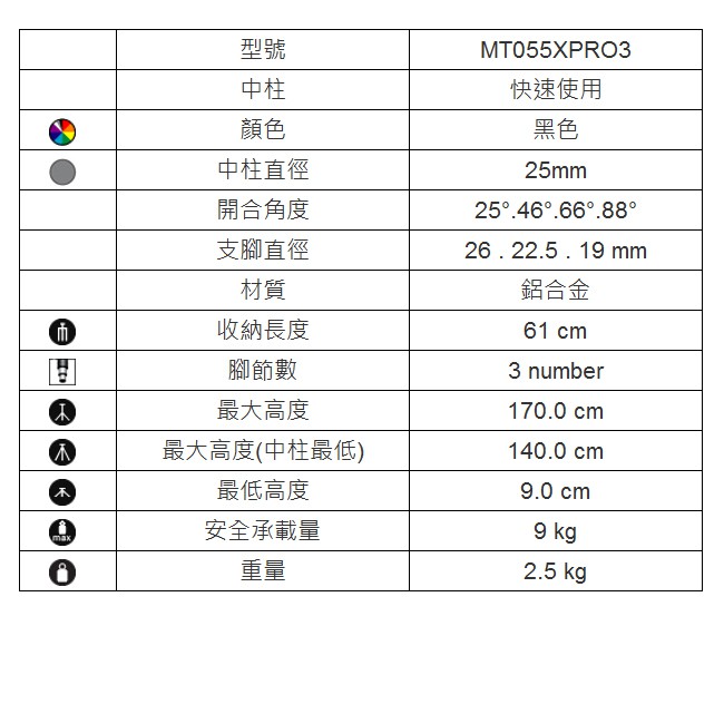 Manfrotto 新055系列 鋁合金三節腳架 MT055XPRO3