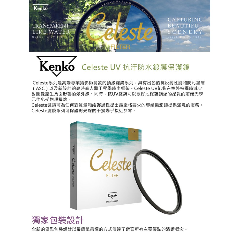 Kenko Celeste UV 58mm 頂級抗汙防水鍍膜保護鏡 KE025860
