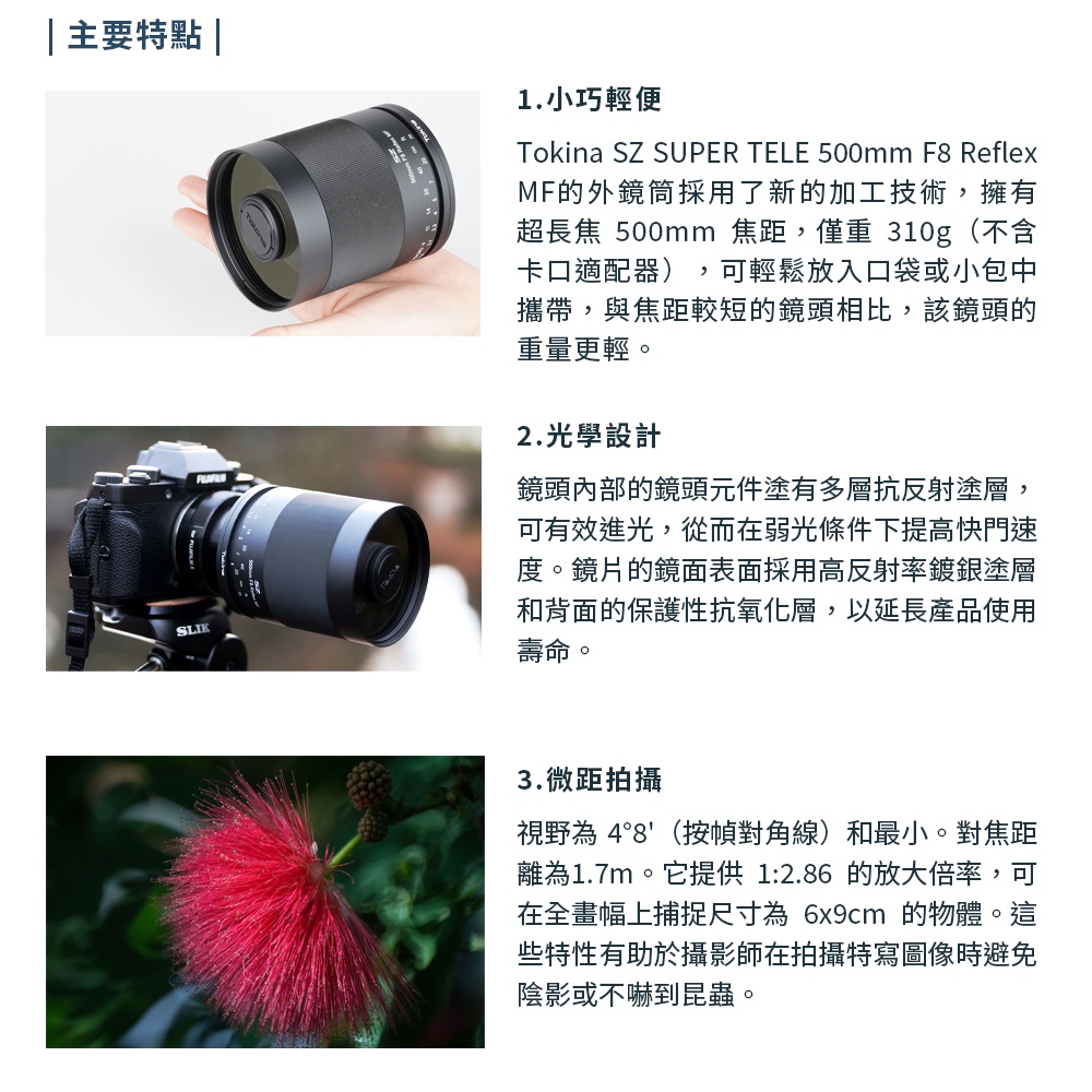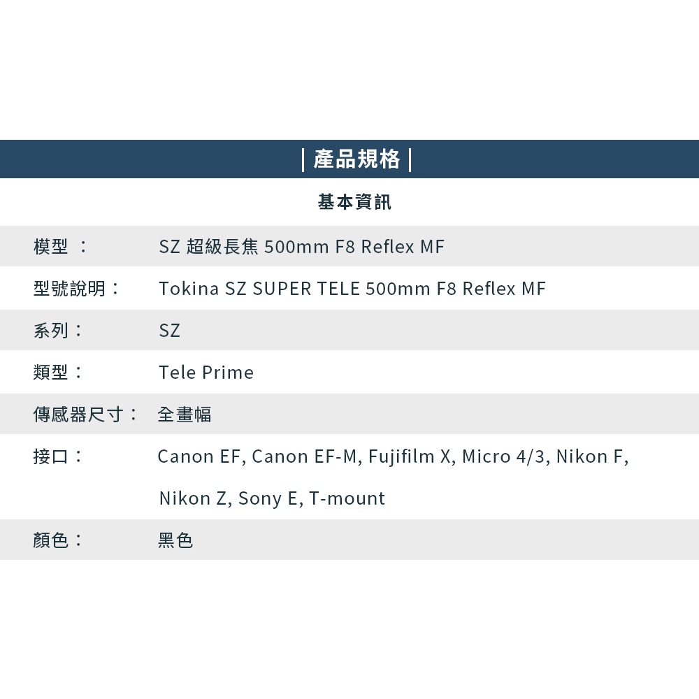 Tokina SZ 500MM F8反射鏡 FOR SE / FX / C-EOS / NF 公司貨