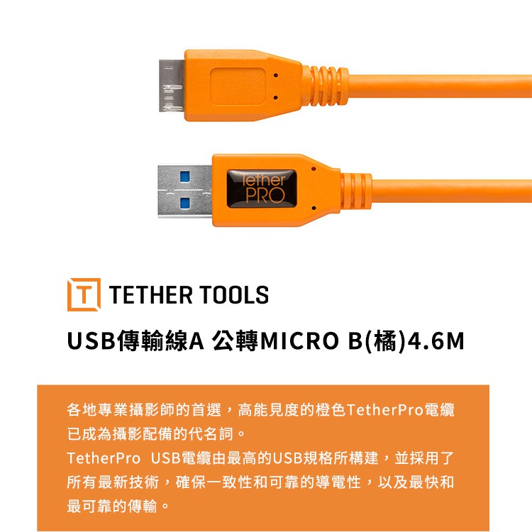 Tether Tools CU5454 USB 3.0 轉 Micro-B 傳輸線 4.6M