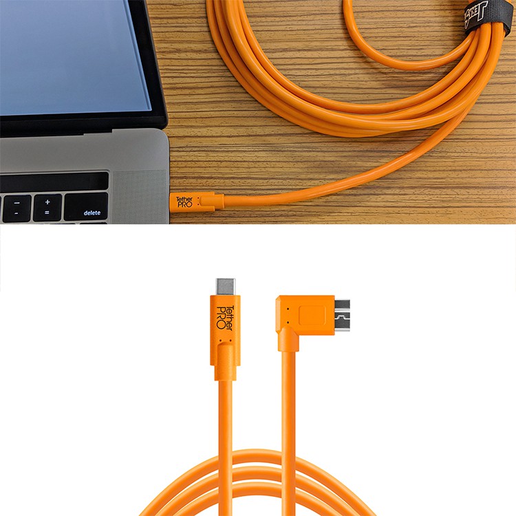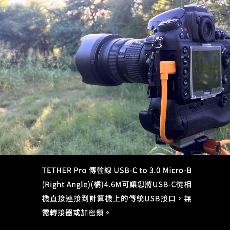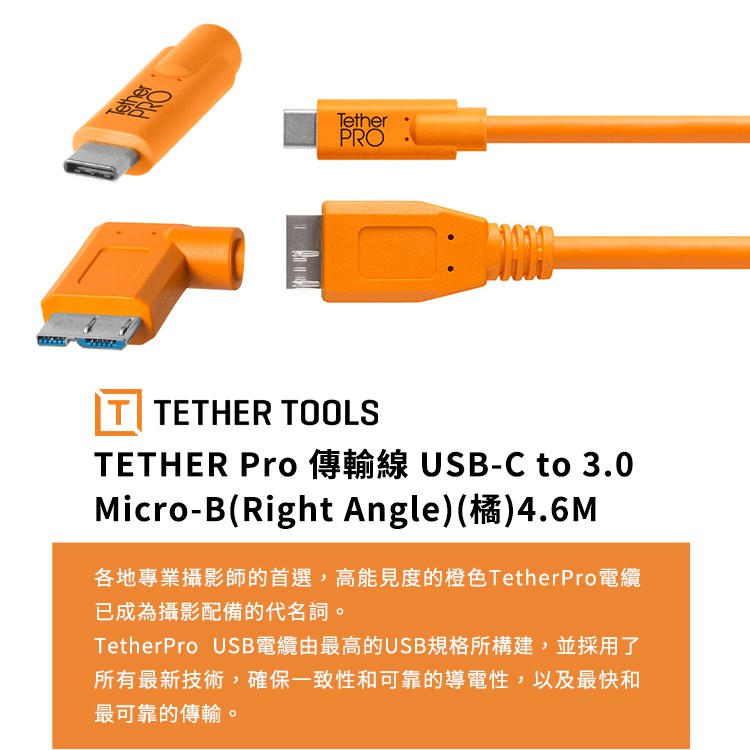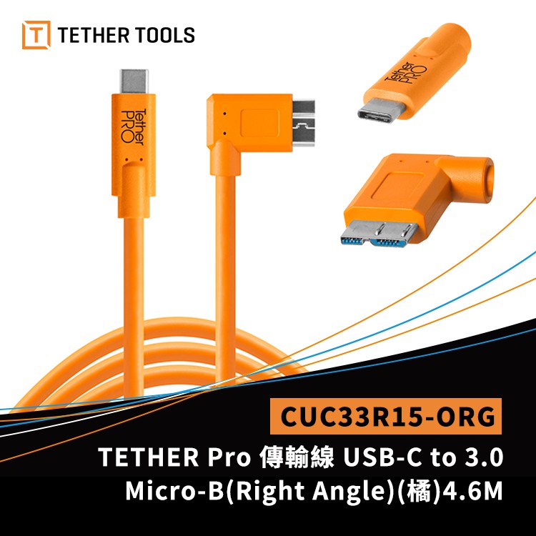 Tether Tools CUC33R15-ORG USB-C 轉 3.0 Micro-B 直角 傳輸線 4.6M