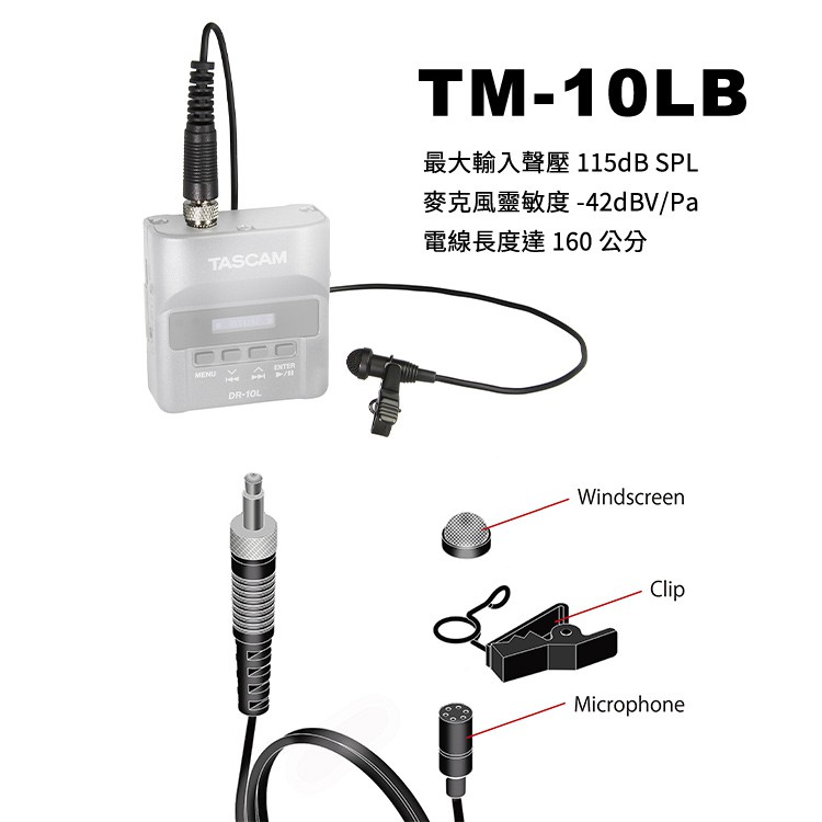 TASCAM TM-10LB 領夾式麥克風 黑色 TM-10LB 公司貨