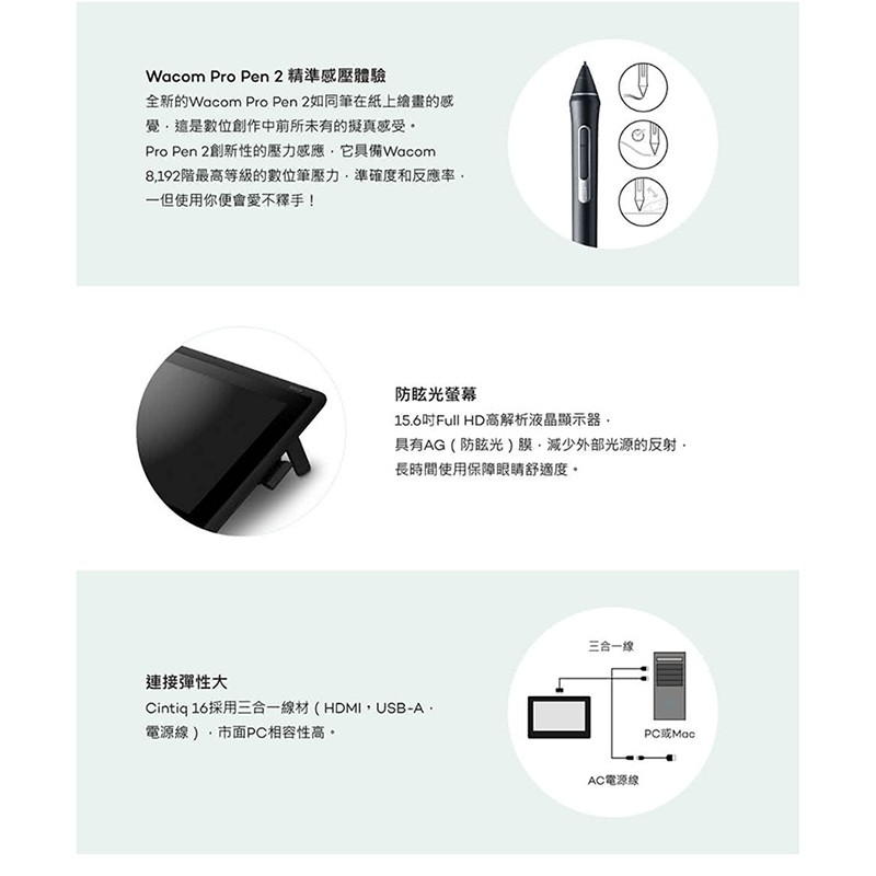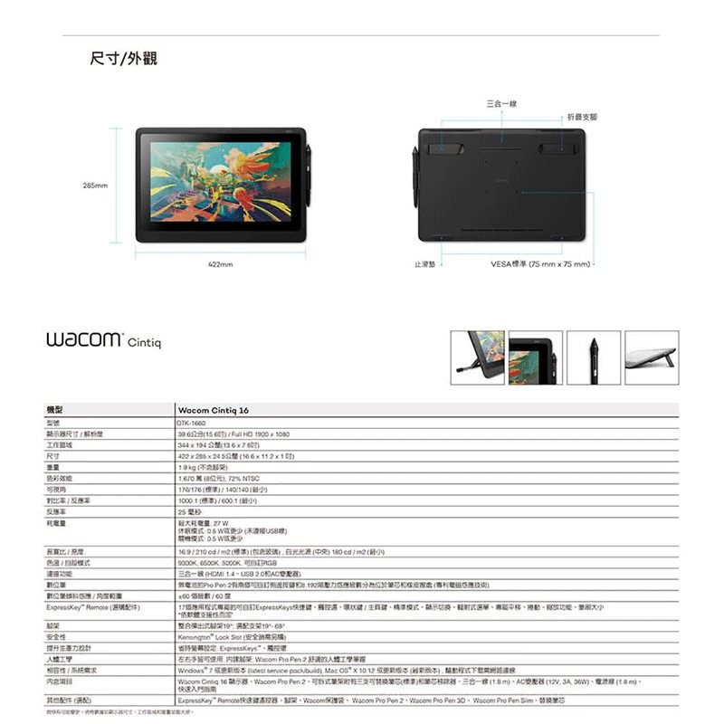 Wacom Cintiq 16 繪圖液晶螢幕 (DTK-1660/K0) 公司貨
