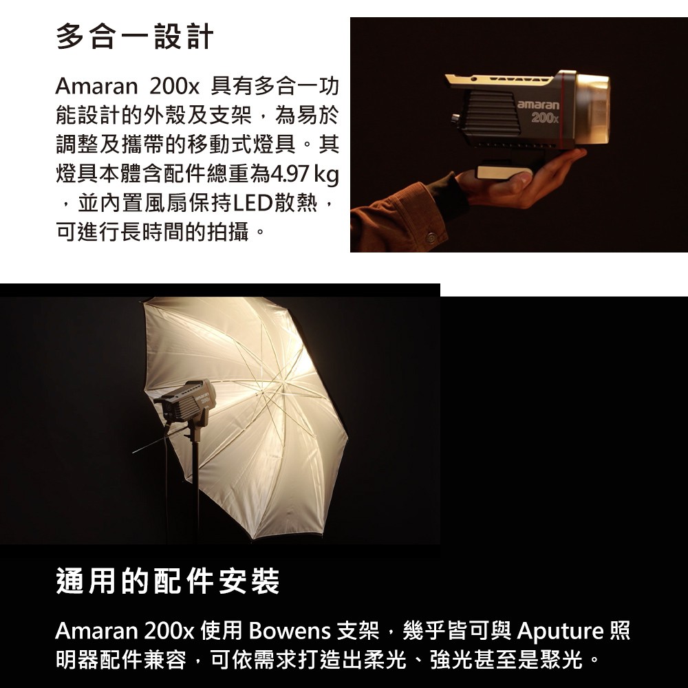 Aputure 愛圖仕 AMARAN 200X LED攝影燈 聚光燈 雙色溫 公司貨