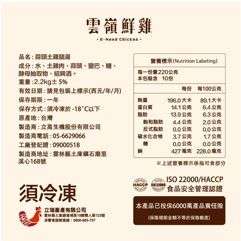 【雲嶺鮮雞】家庭號-蒜頭土雞湯(全雞2200g/盒)