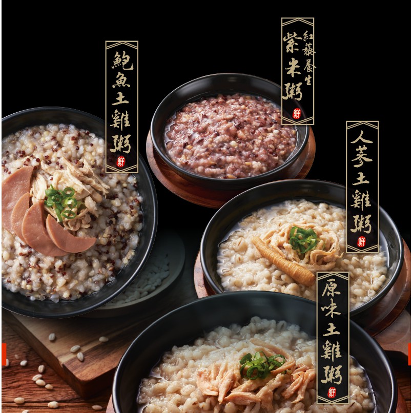 【雲嶺鮮雞】甘溫土雞粥(原味+人蔘+鮑魚+紅藜養生紫米粥/常溫保存320g/包)