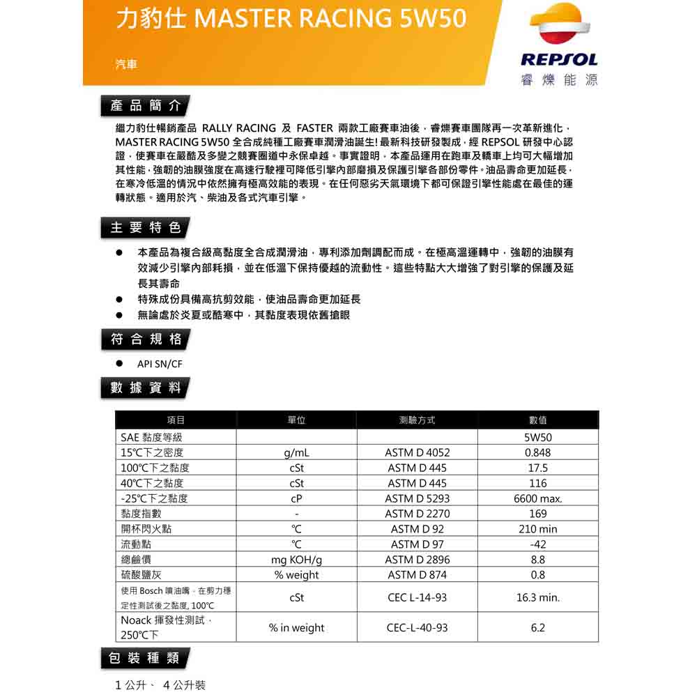 【力豹仕】機油_力豹仕 5W50 MASTER RACING SN 1L_整箱12瓶(車麗屋)