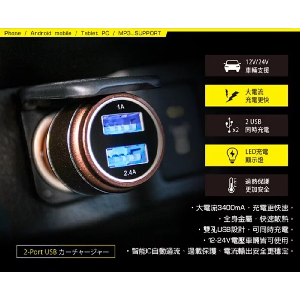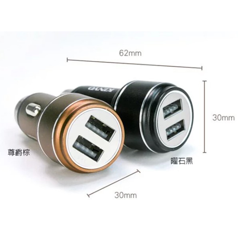 【KINYO】車充 2USB 3.4A CU-53B黑/棕 DC12-24V 鋁合金USB車用充電器 黑(車麗屋)