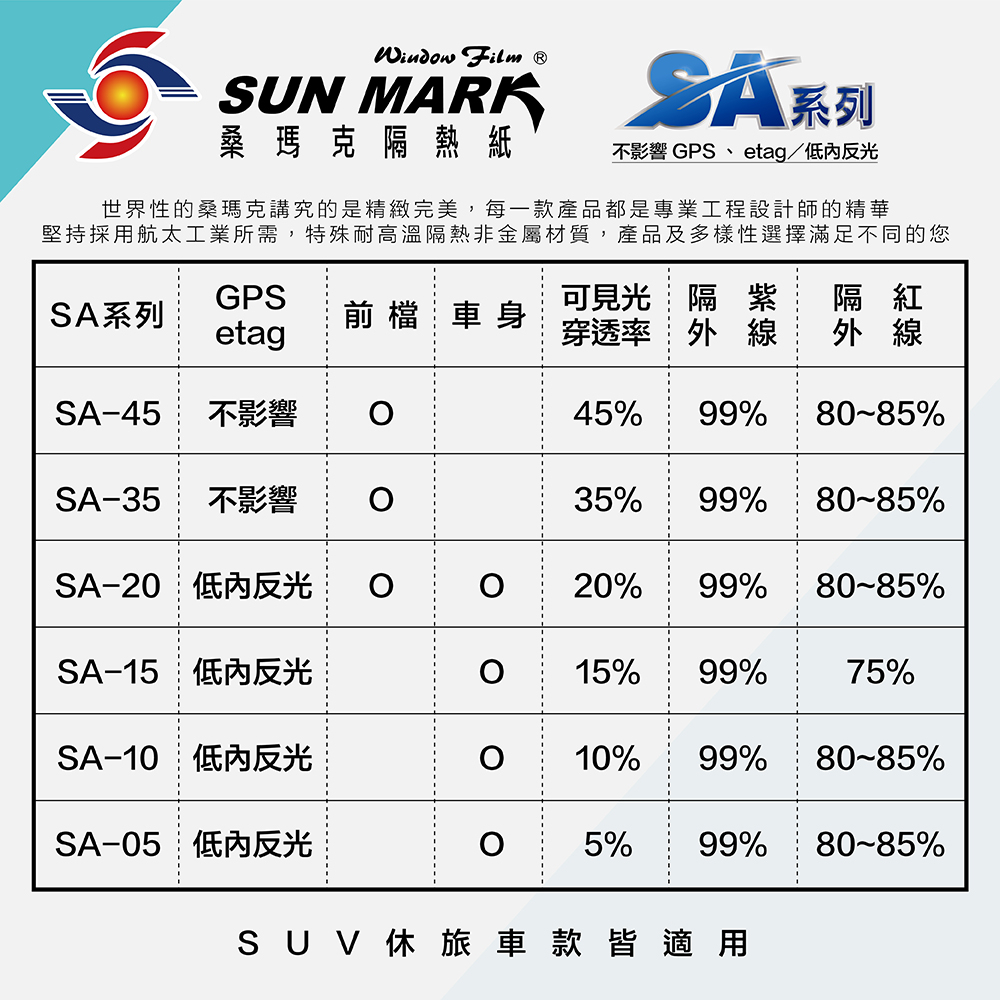 【SUN MARK 桑瑪克】隔熱紙 桑瑪克 SA-05 特殊車(車麗屋)