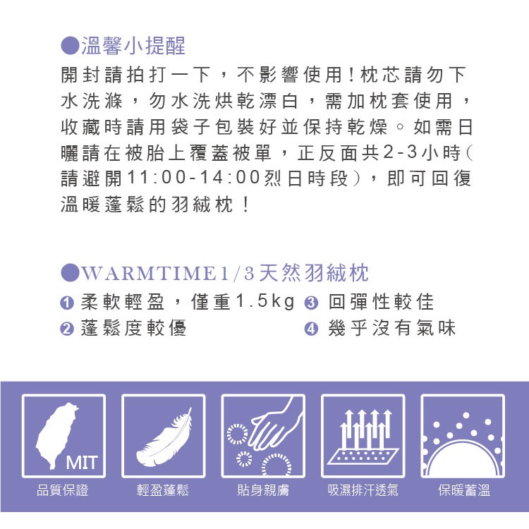 溫馨時刻1/3【天然水鳥羽絨枕】枕頭 / 五星級飯店用 / 非羽絲絨枕 (購買二顆及二顆以上請選宅配)