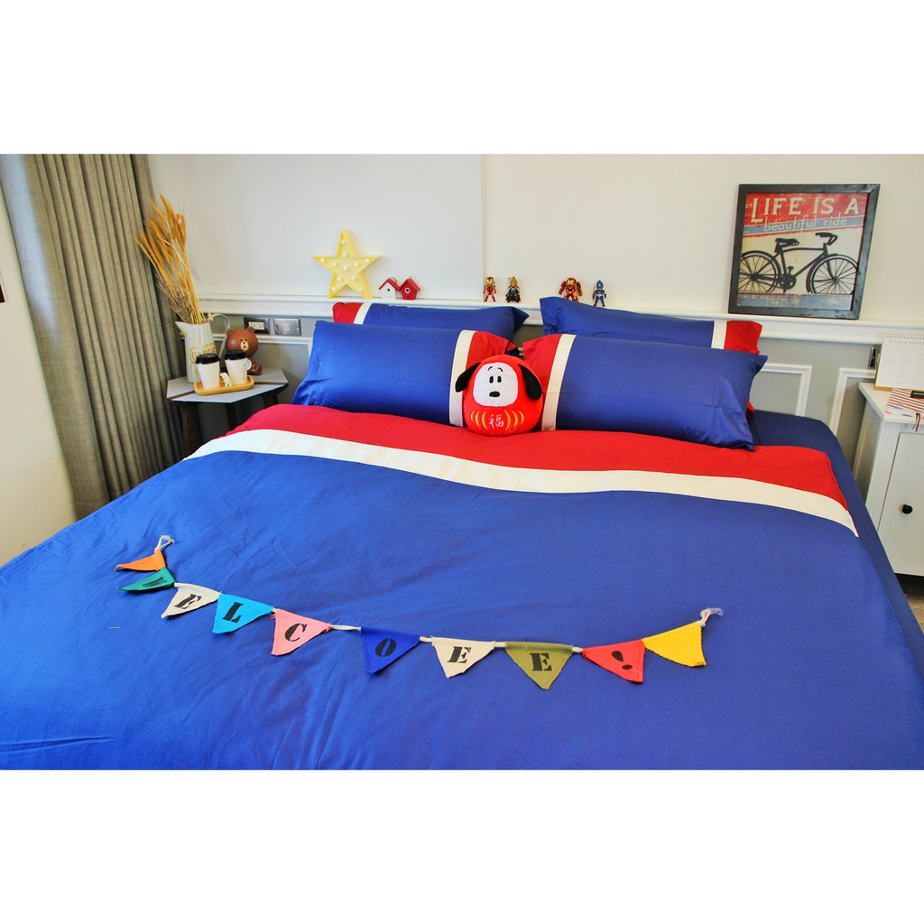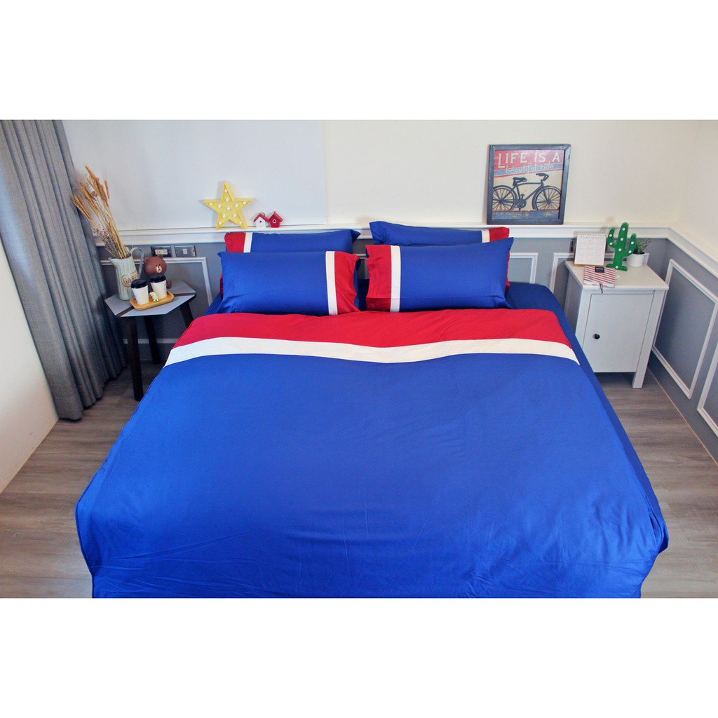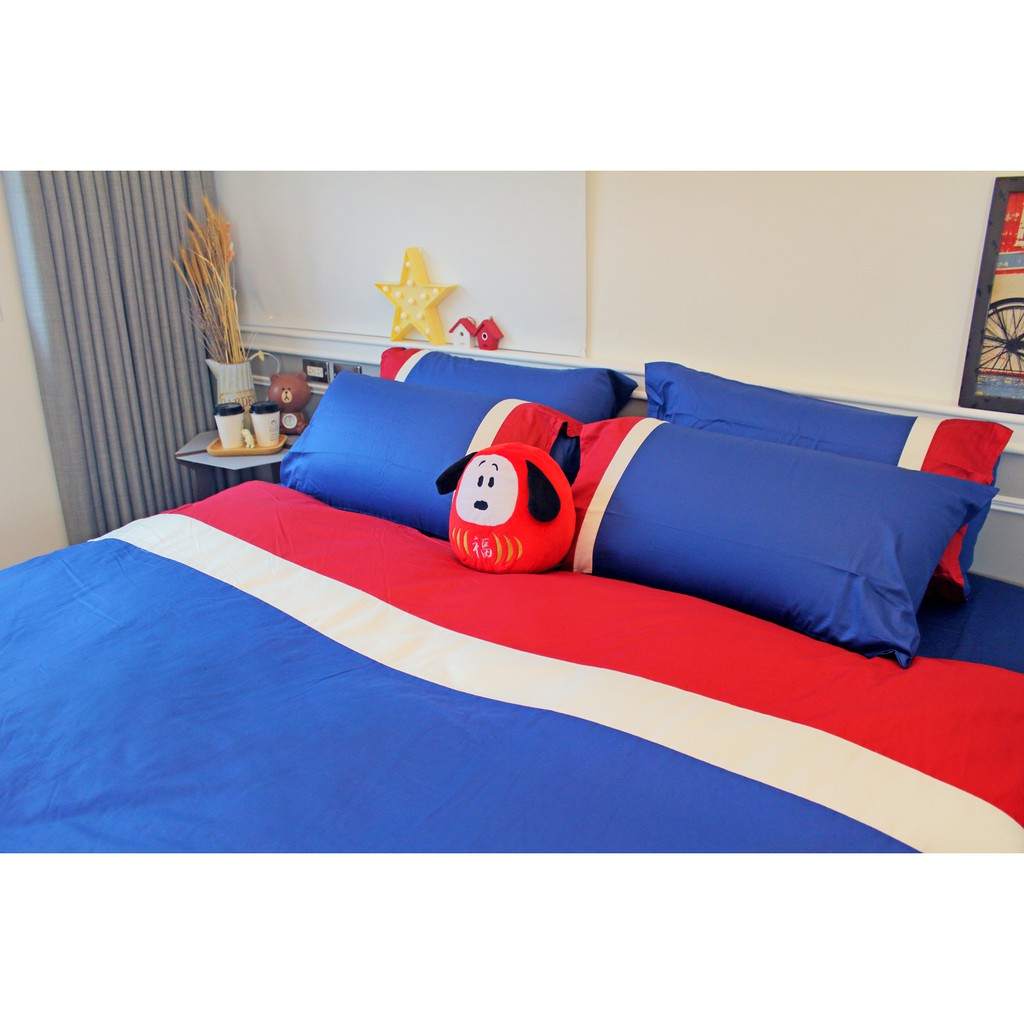 溫馨時刻1/3 - 床包/被套/兩用被 素色條紋設計款 單人/雙人/加大雙人-100%精梳棉【藍X紅X白】
