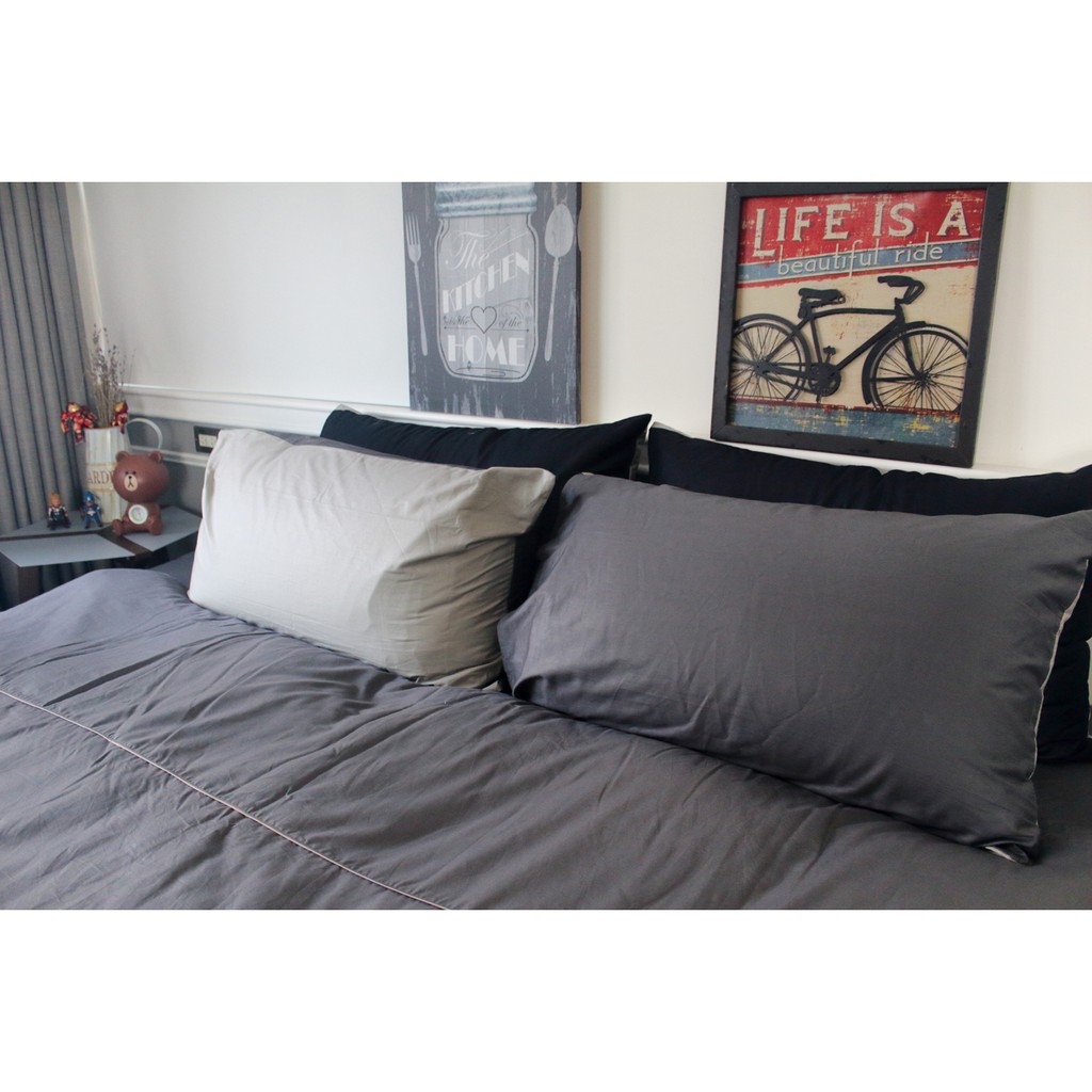 溫馨時刻1/3 - 床包/被套/兩用被 單人/雙人/加大雙人-100%精梳棉【深灰X淺灰】