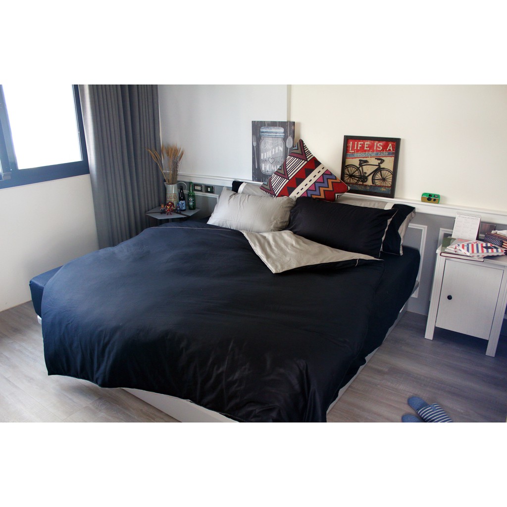 溫馨時刻1/3 - 床包/被套/兩用被 素色混搭設計款 單人/雙人/加大雙人- 100%精梳棉【黑X淺灰】