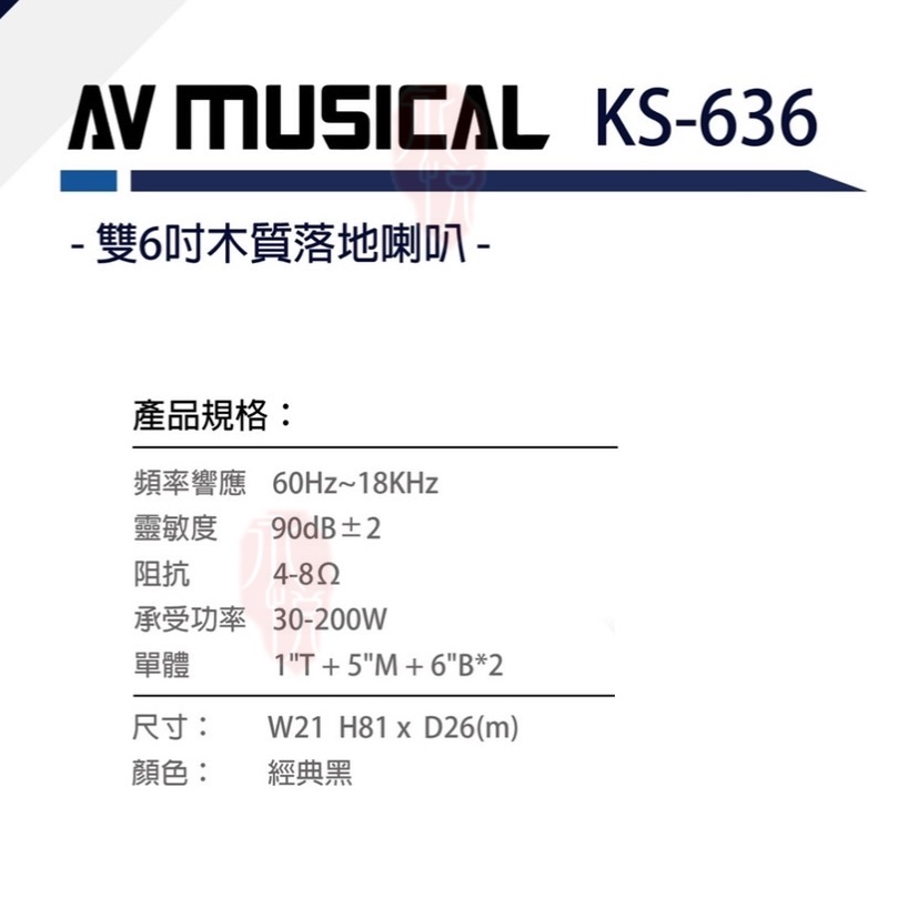 【AV MUSICAL】KS-636 雙6吋落地式喇叭 (對) 全新公司貨