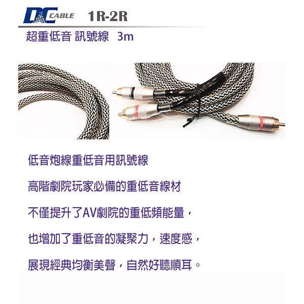 【DC Cable】1R-2R 超重低音訊號線 全新公司貨